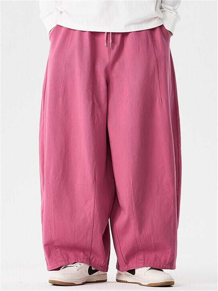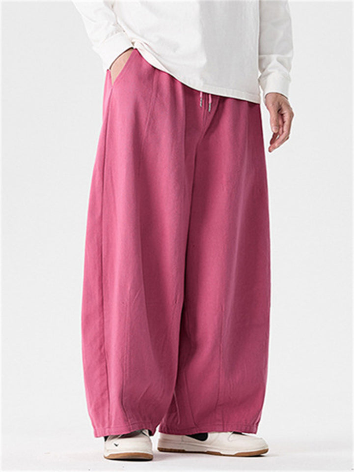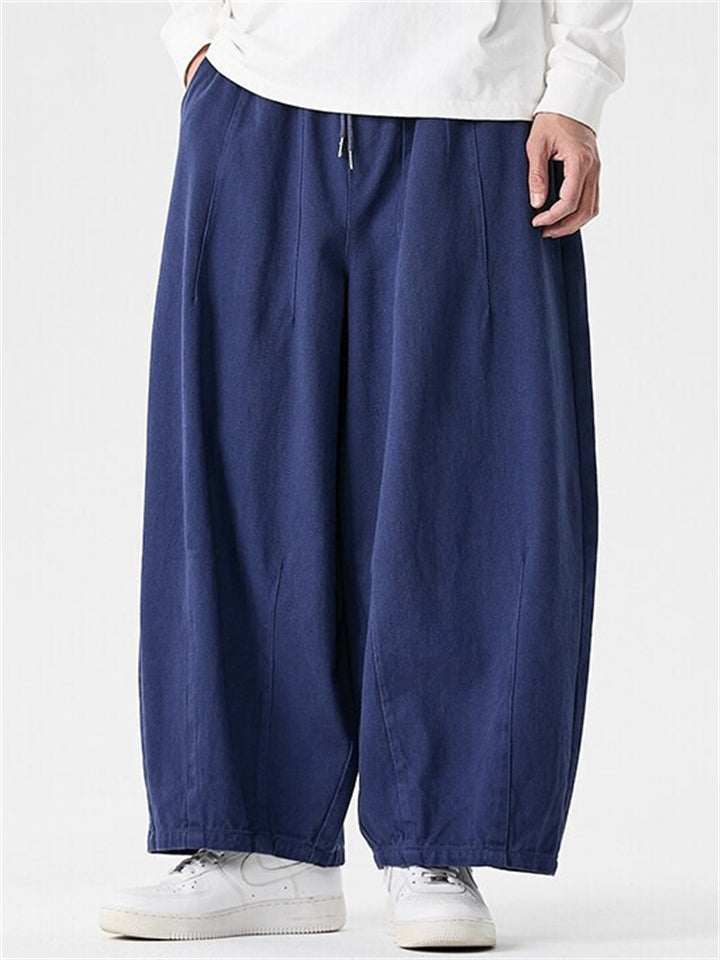 Vintage Japanese Street Style Drawstring Linen Pants for Men