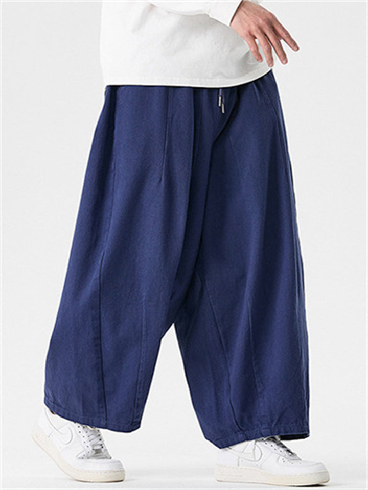 Men's Japanese Style Vintage Solid Color Texture Scimitar Pants