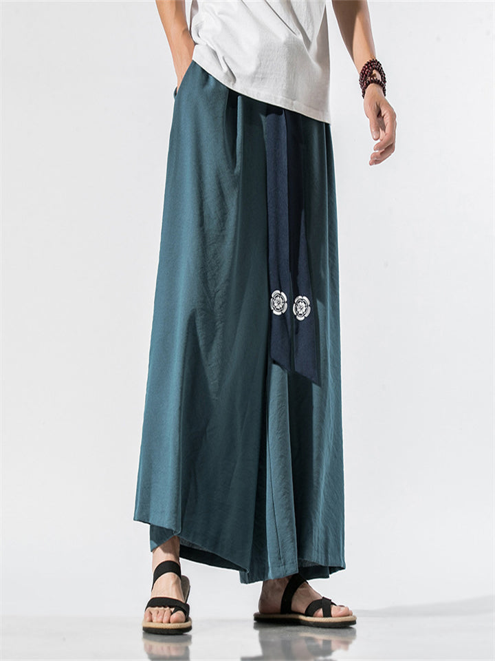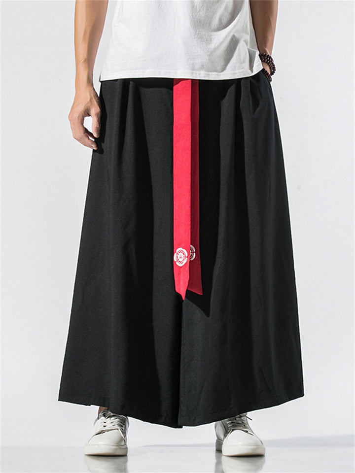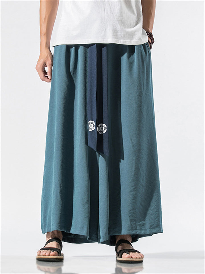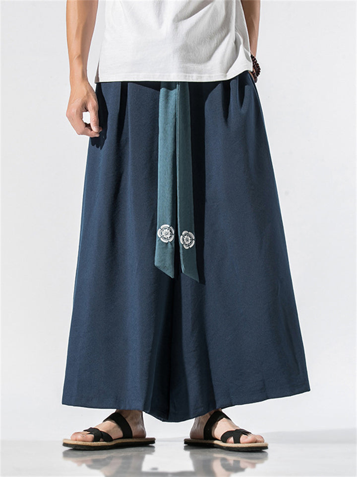 Men's Japanese Style Vintage Solid Color Texture Scimitar Pants