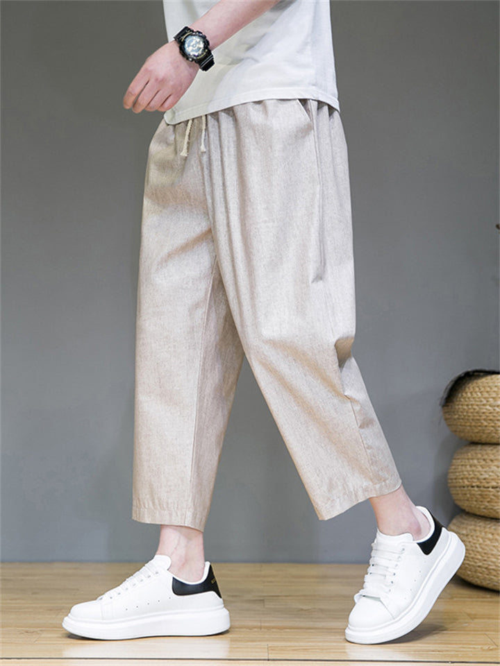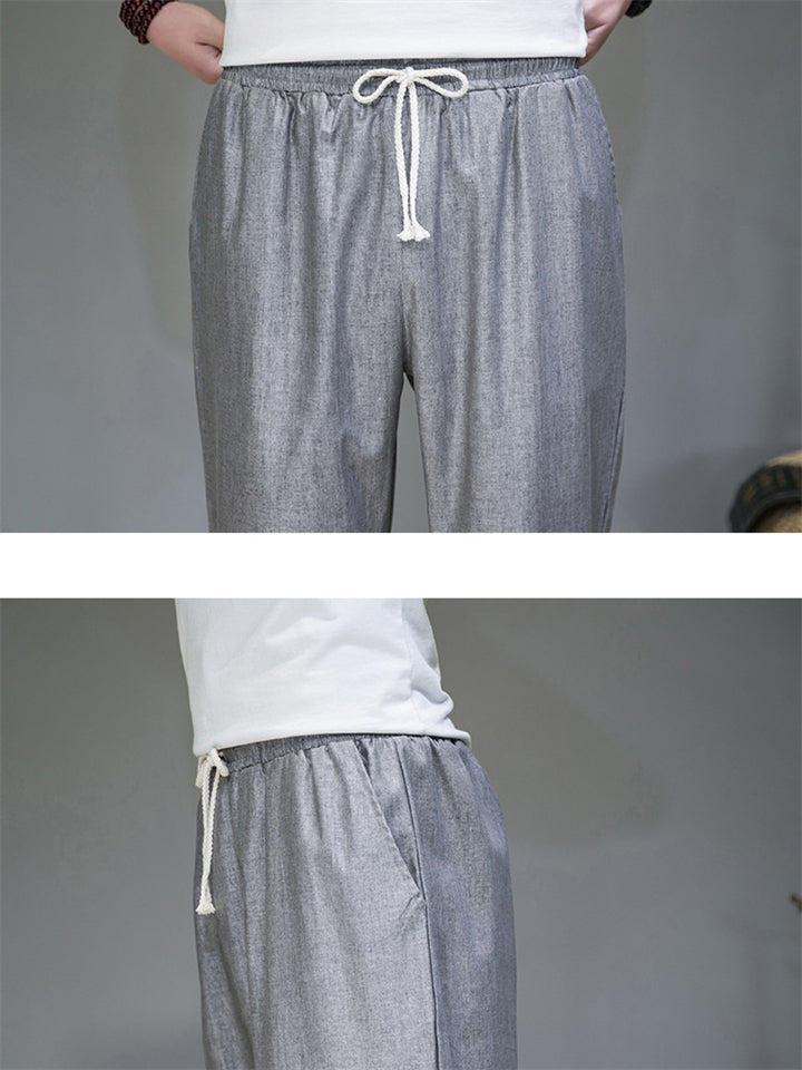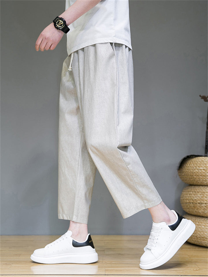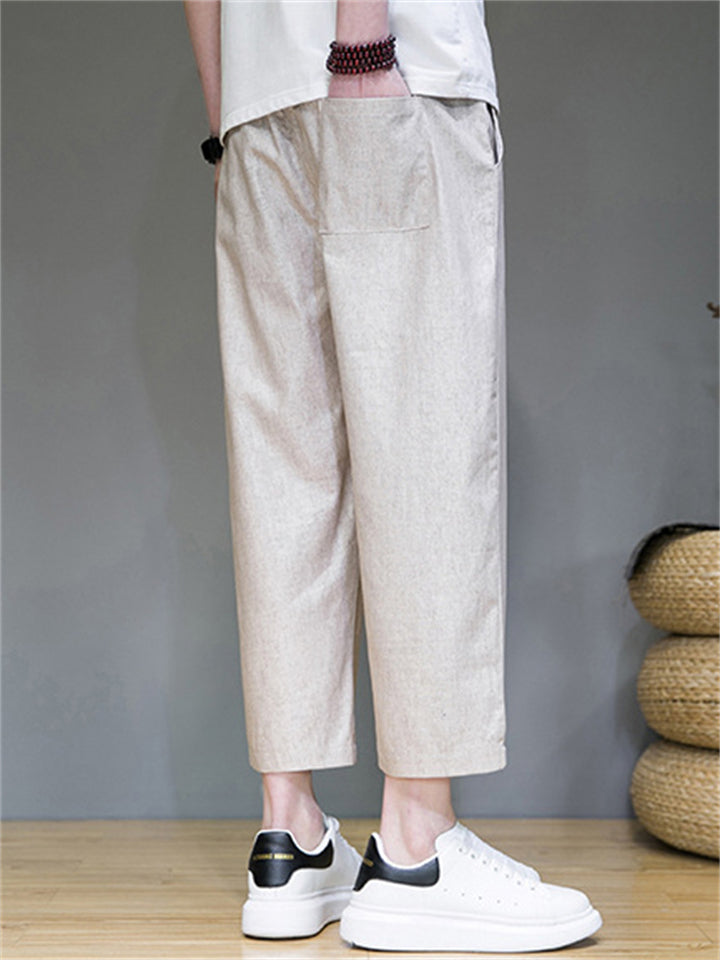 Loose Cozy Cotton Linen Ankle Length Casual Pants for Men