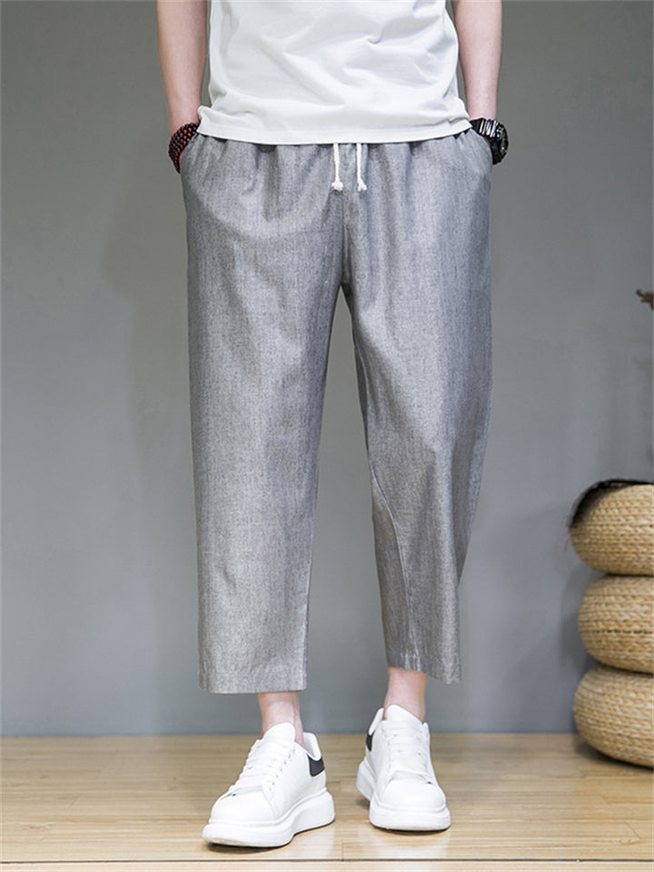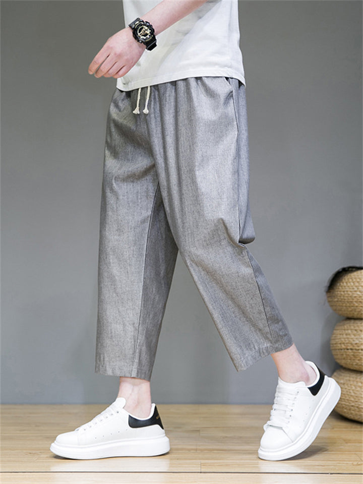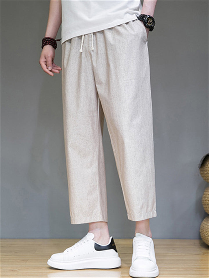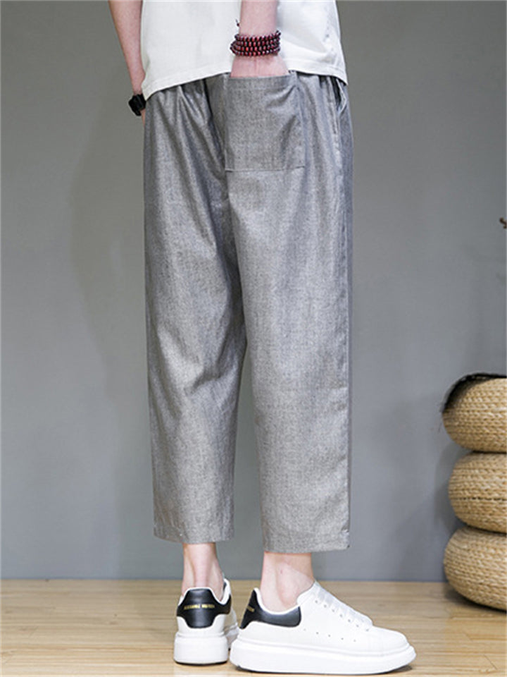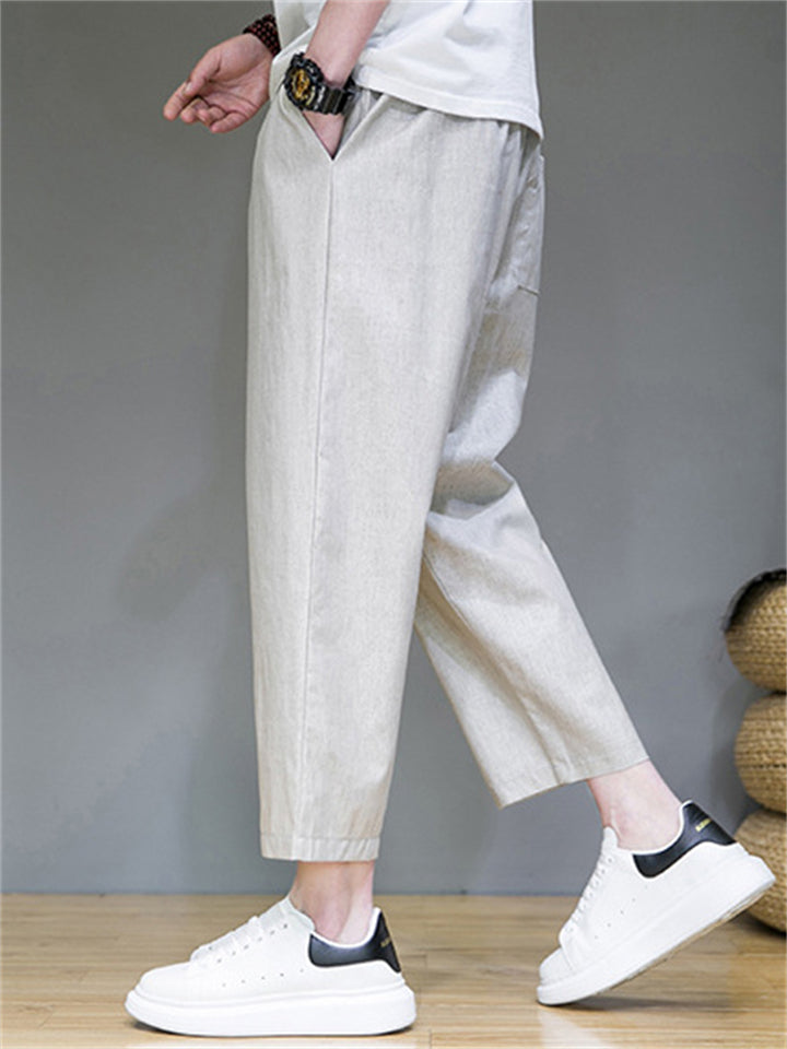 Loose Cozy Cotton Linen Ankle Length Casual Pants for Men