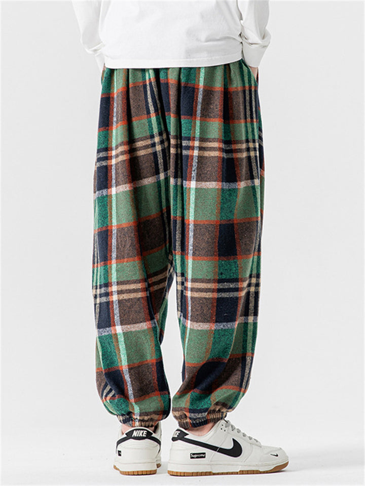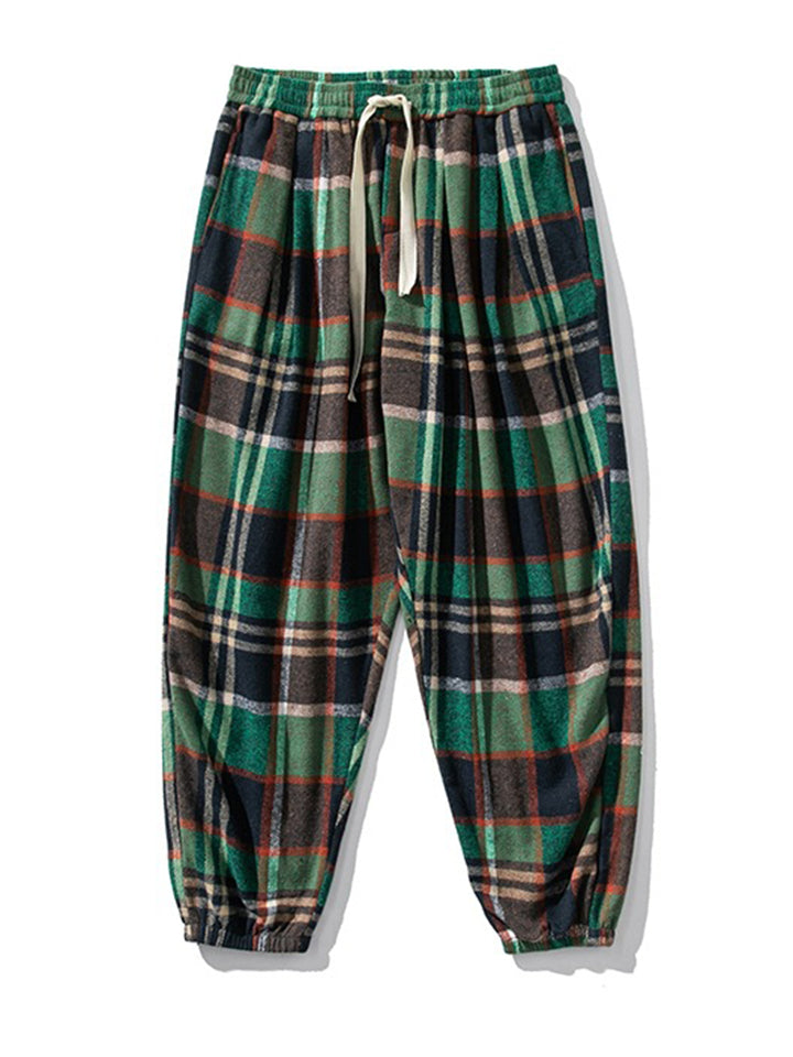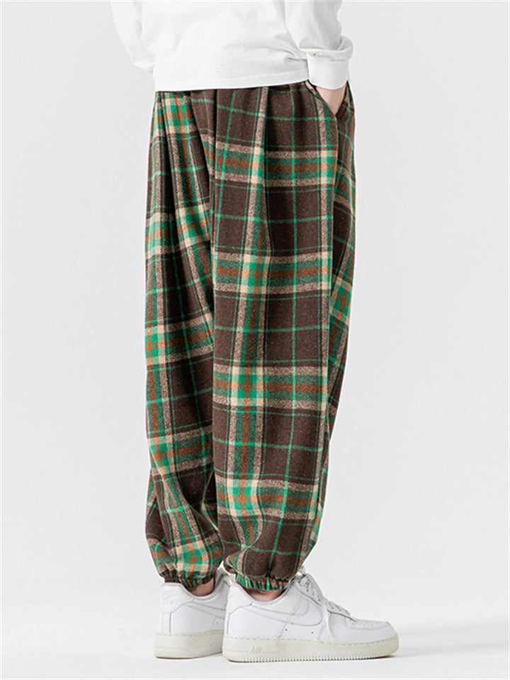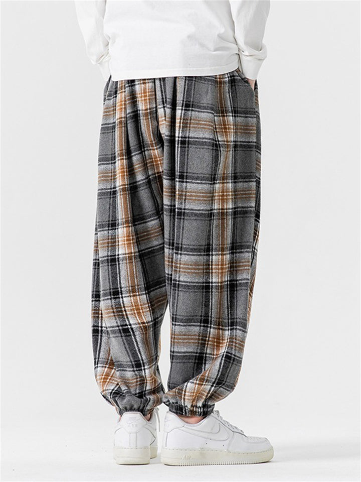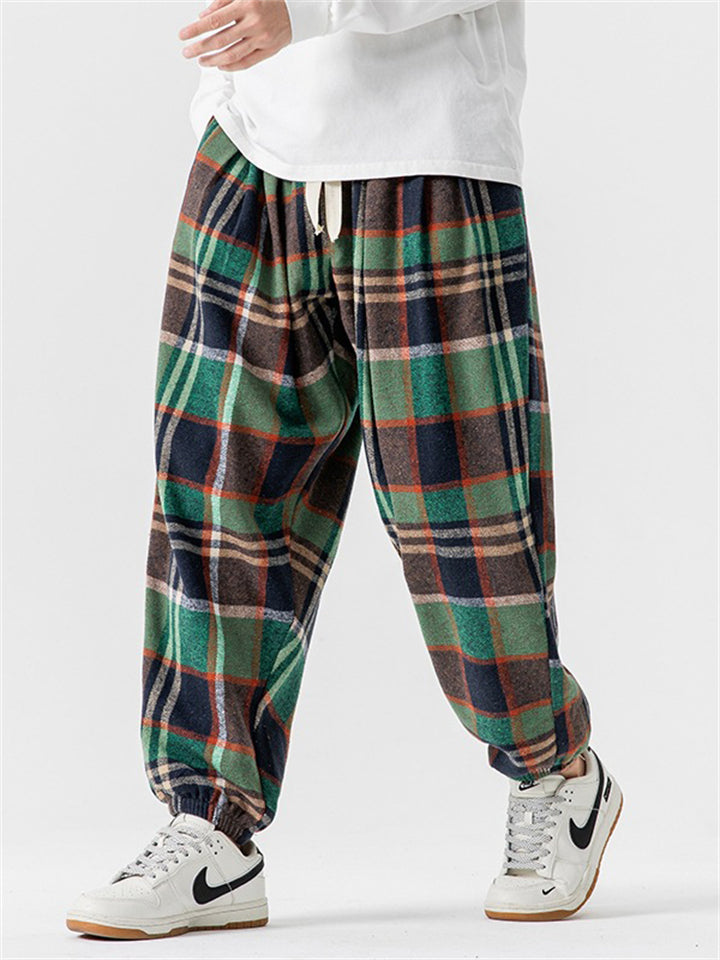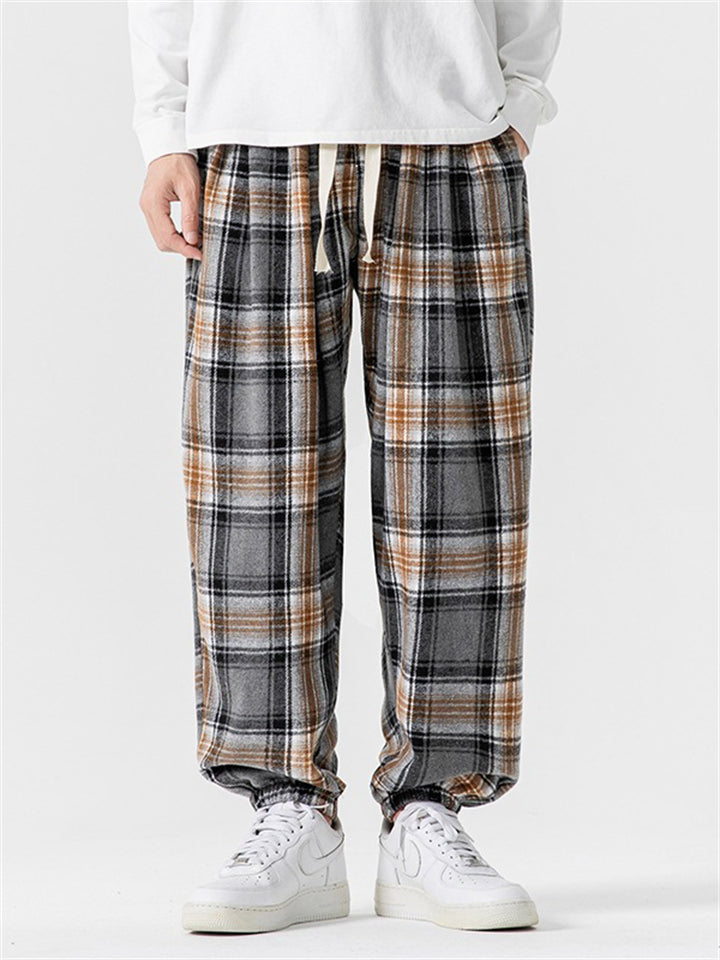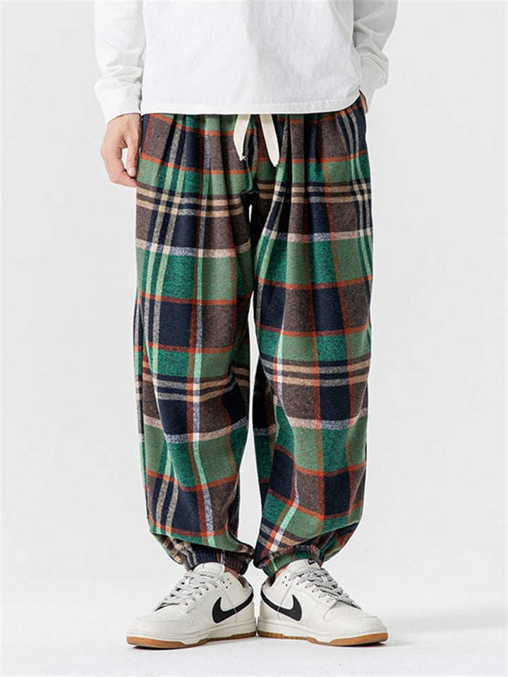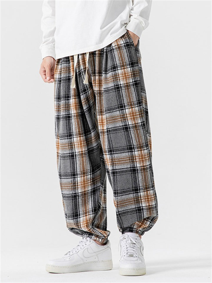 Loose Drawstring Waist Plaid Jogger Pants for Male