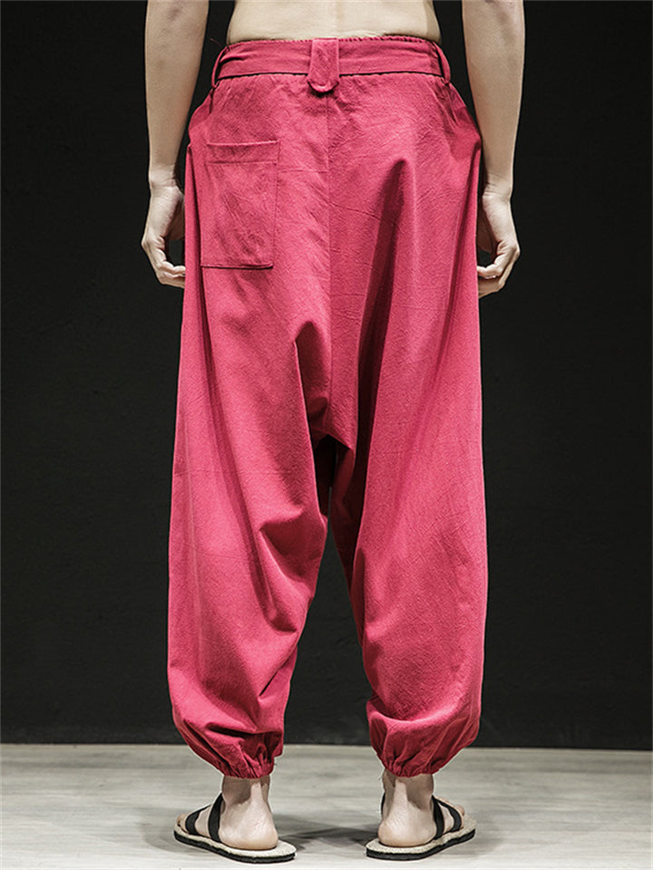 Men's Summer Ethnic Style Beach Bloomers Drop Crotch Capri Pants
