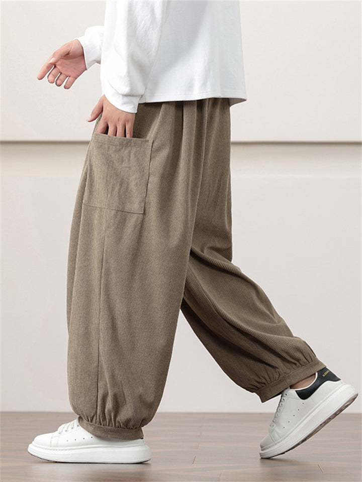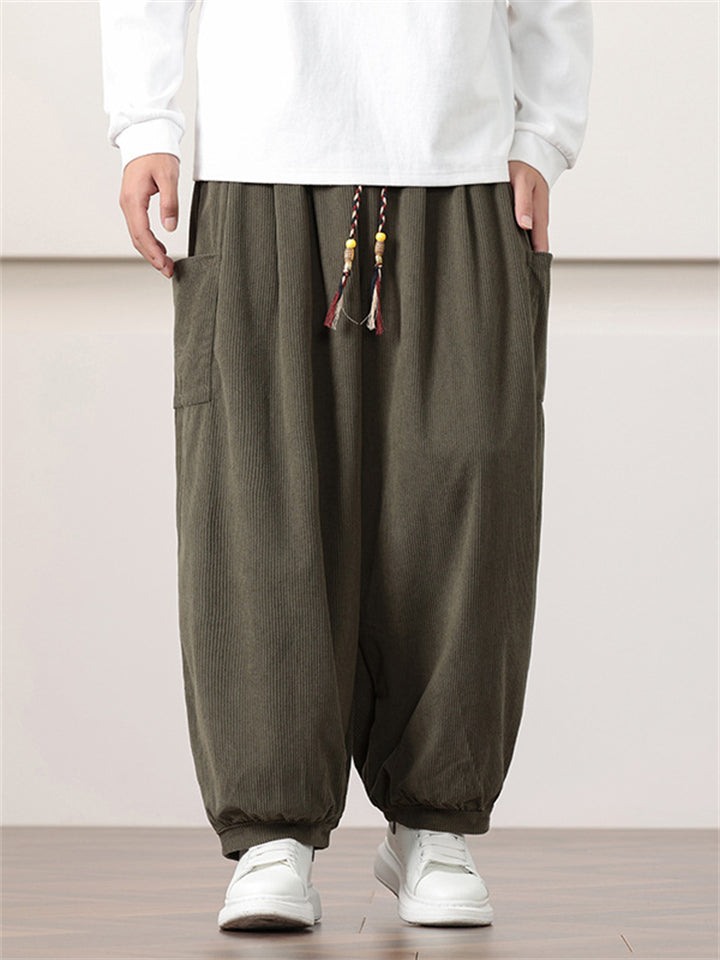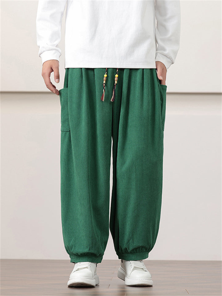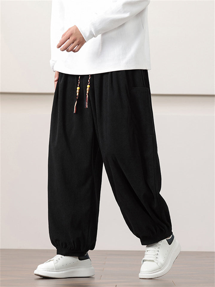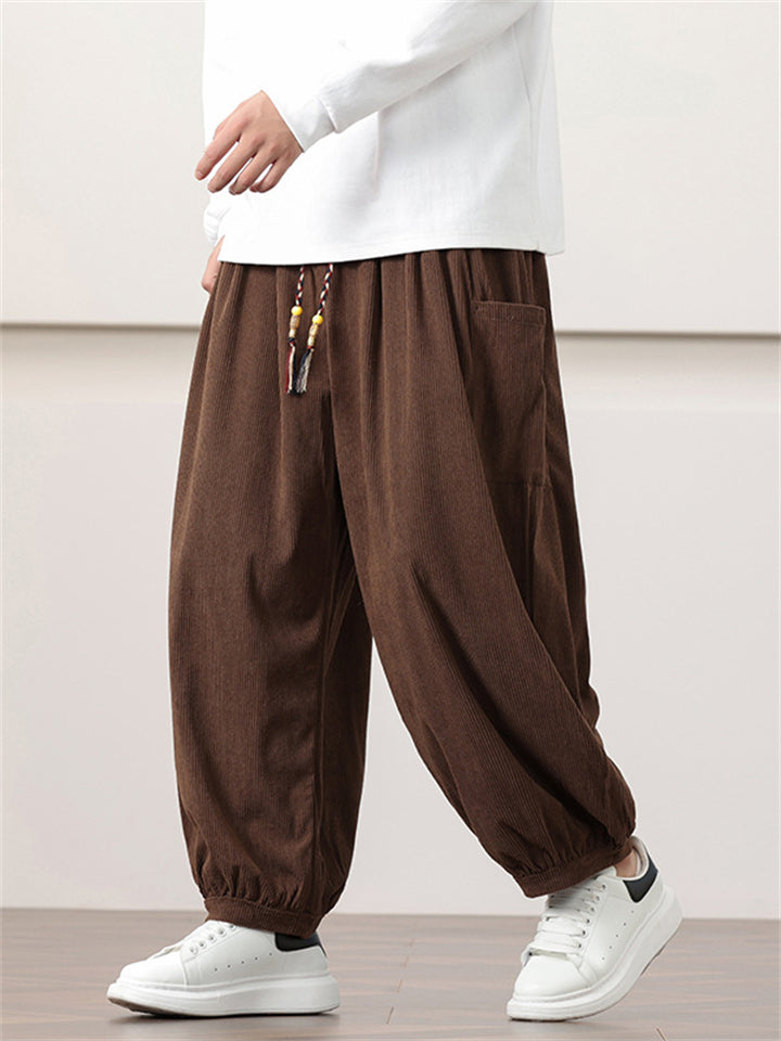 Men's Chinese Style Simple Vintage Corduroy Scimitar Pants