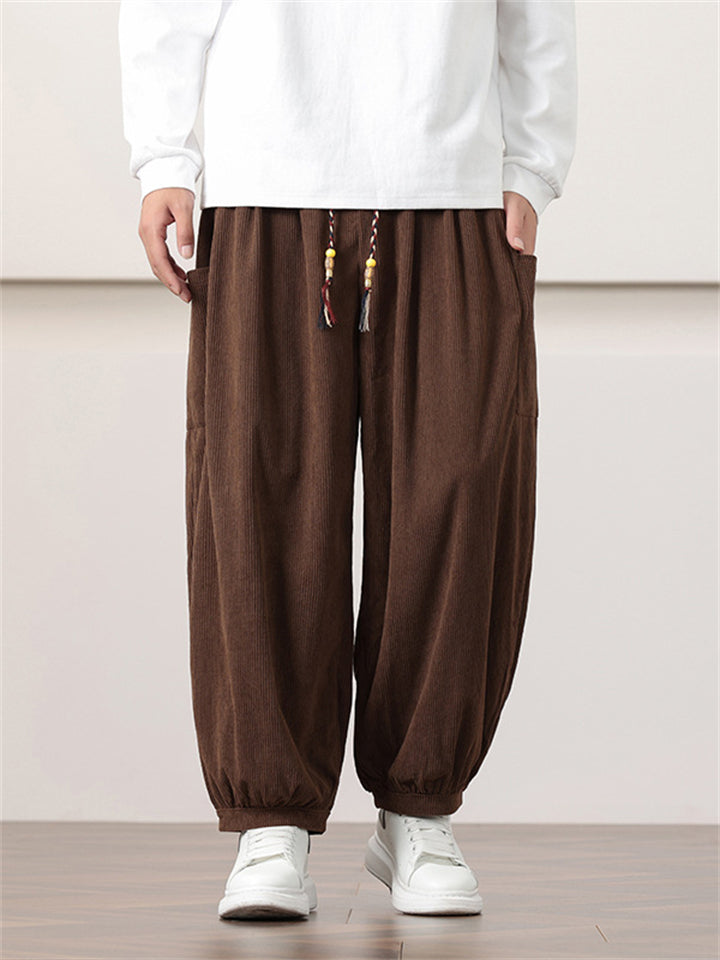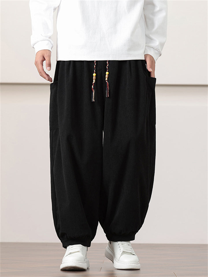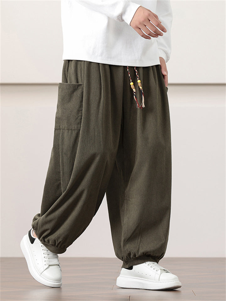 Loose Fit Braided Drawstring Corduroy Pants for Men