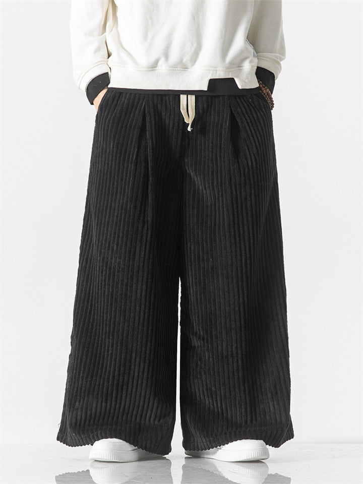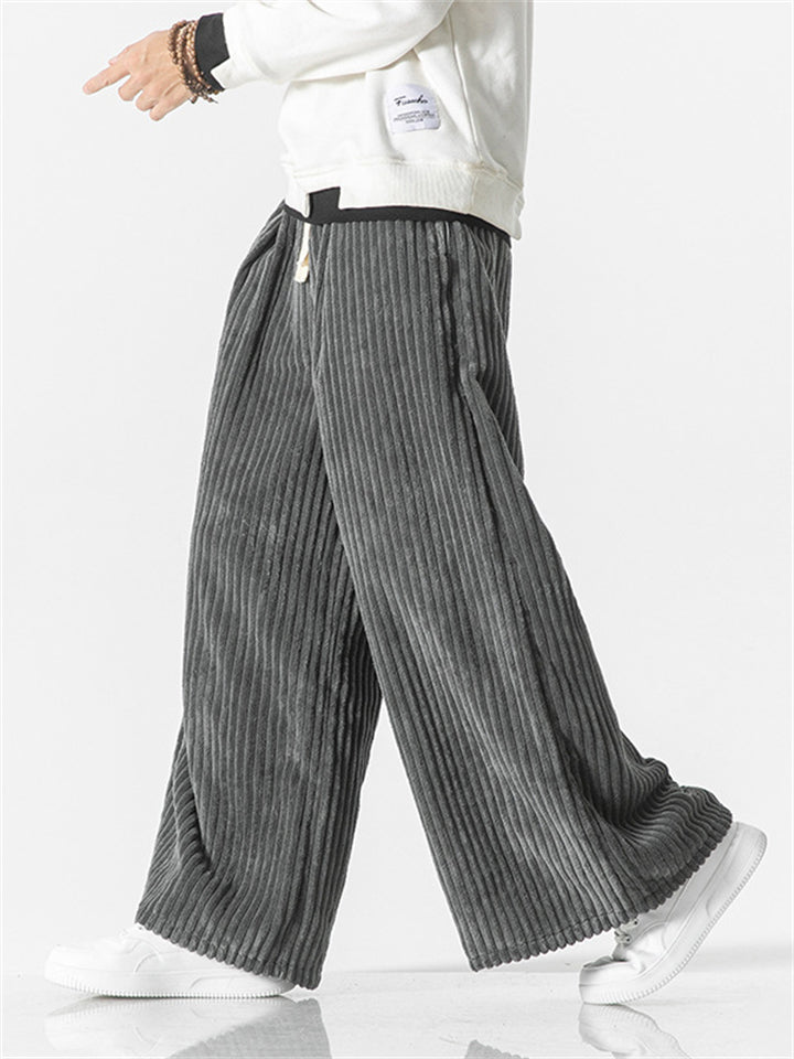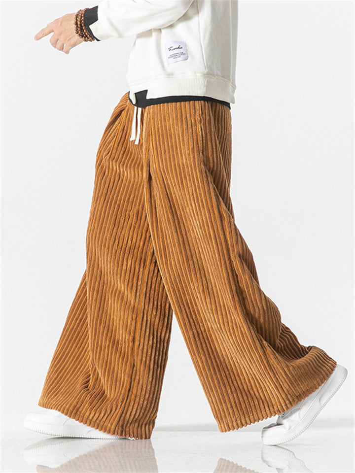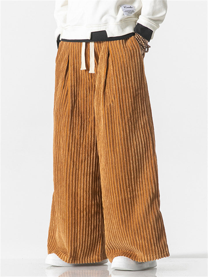Loose Fit Drawstring Thick Corduroy Pants for Male