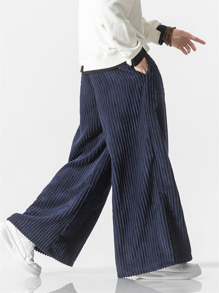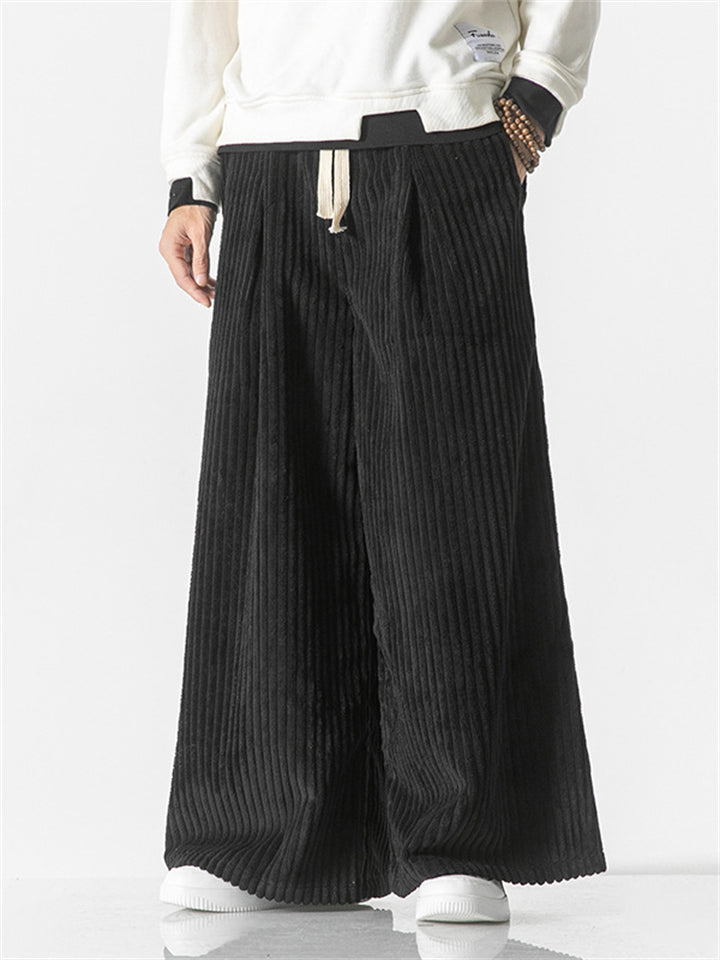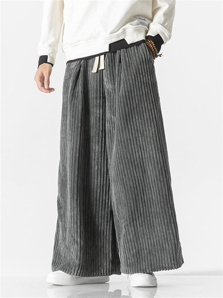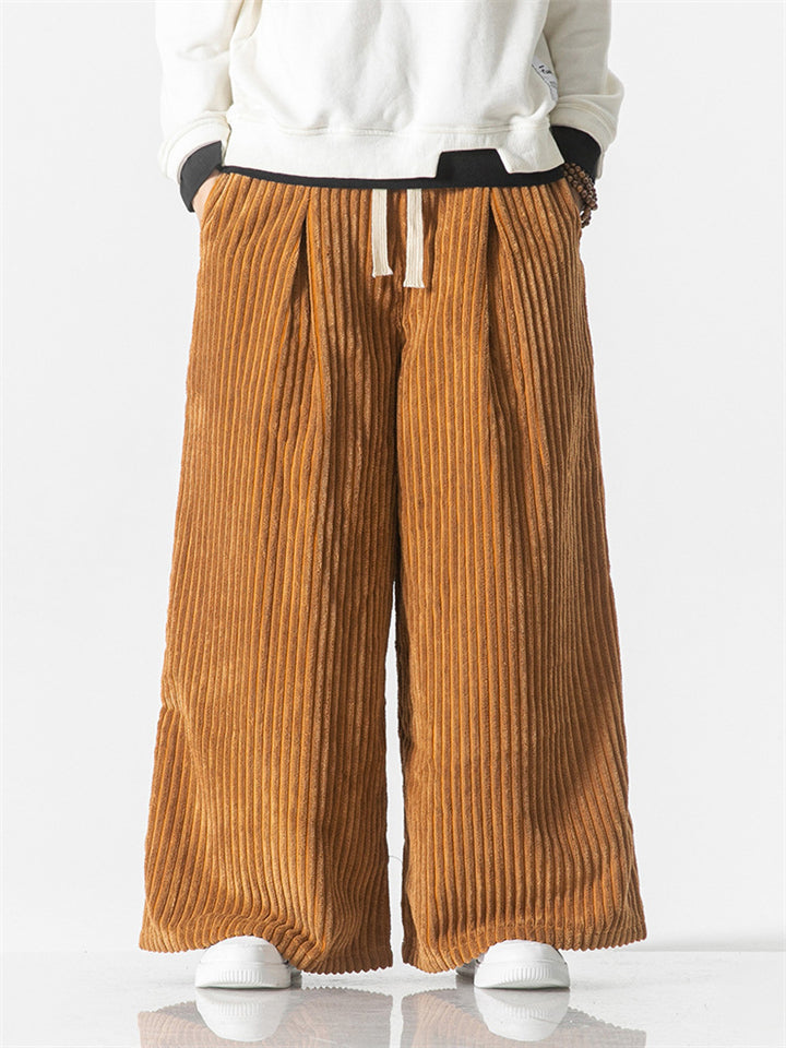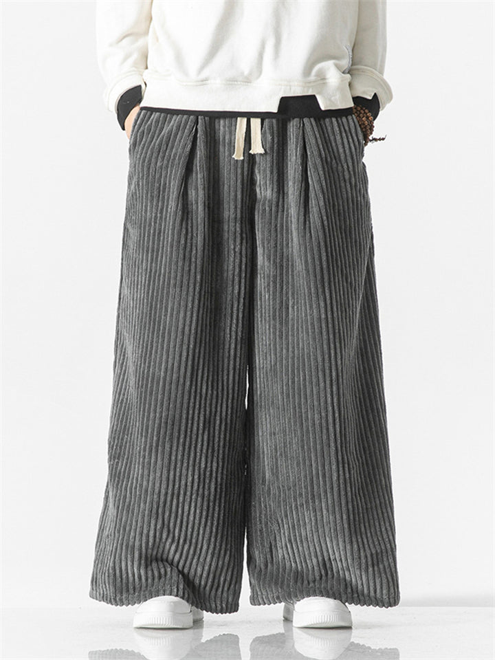 Loose Fit Drawstring Thick Corduroy Pants for Male
