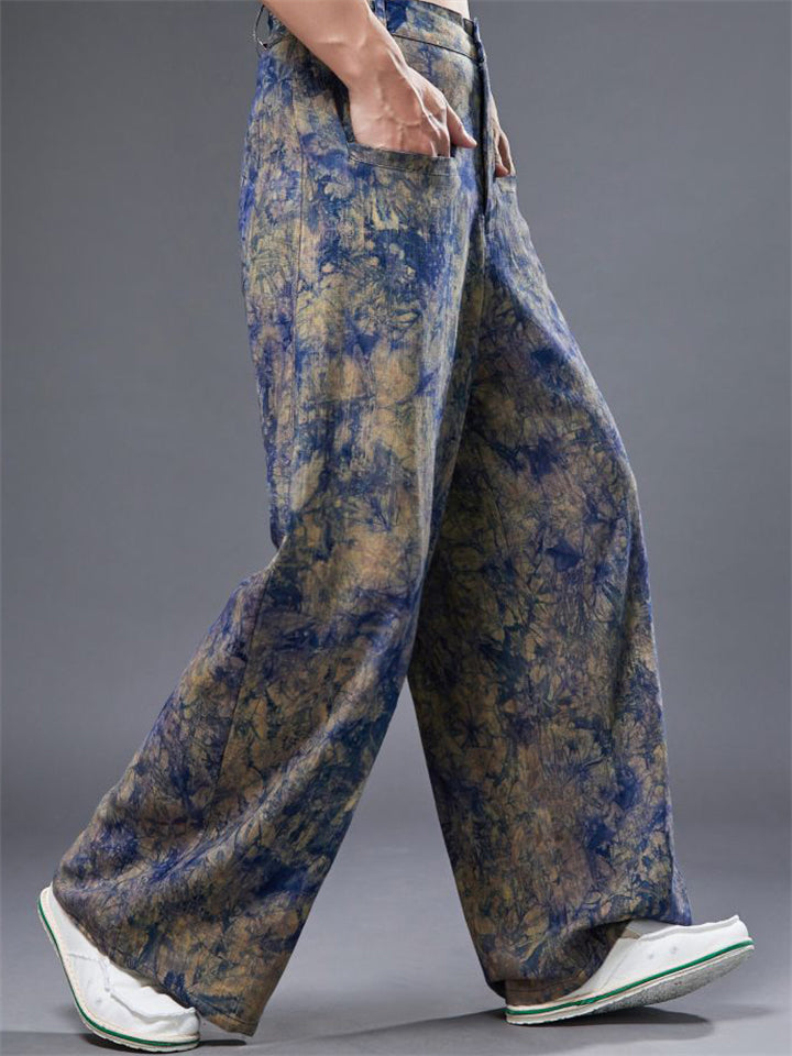 Loose Men's Chinese Style Zhua-Ran Linen Wide Leg Straight Pants