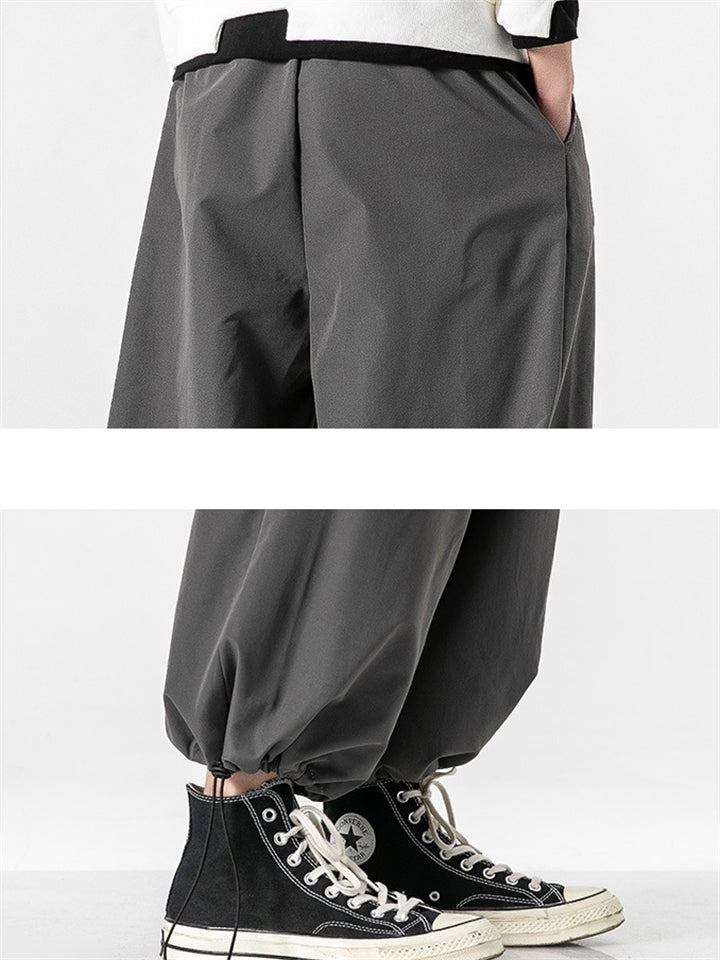 Vintage Japanese Street Style Drawstring Linen Pants for Men