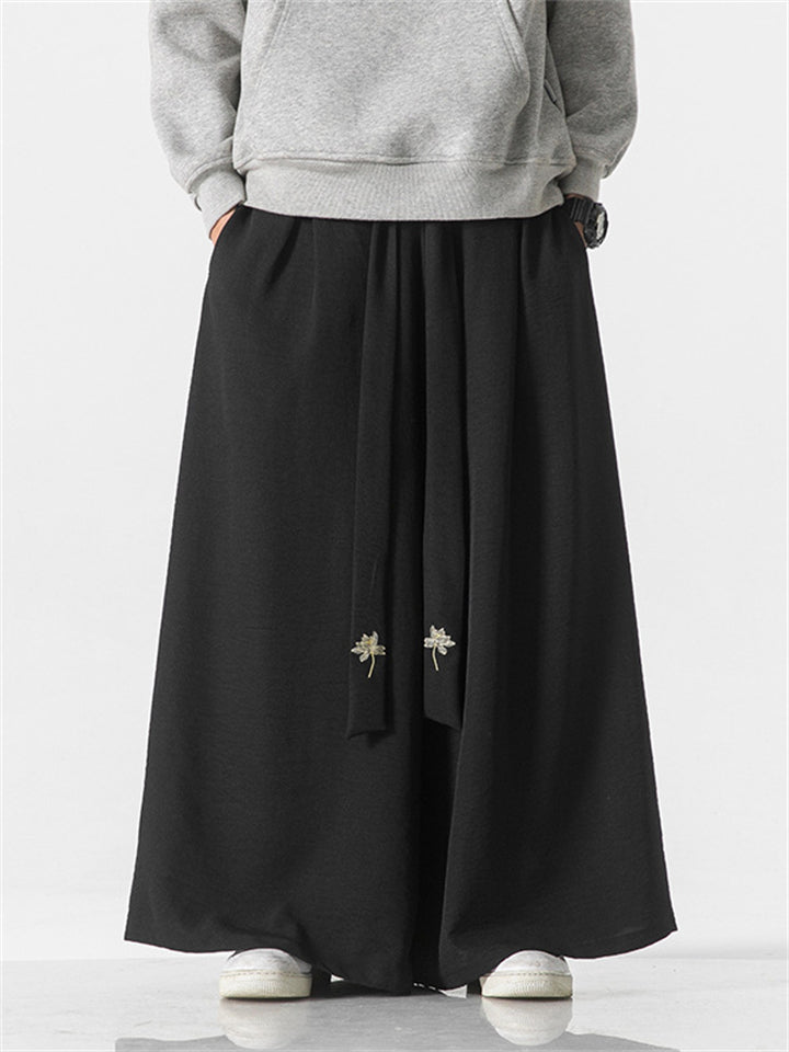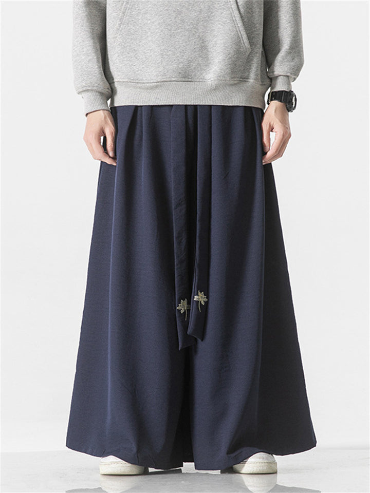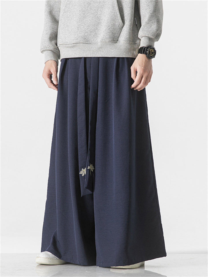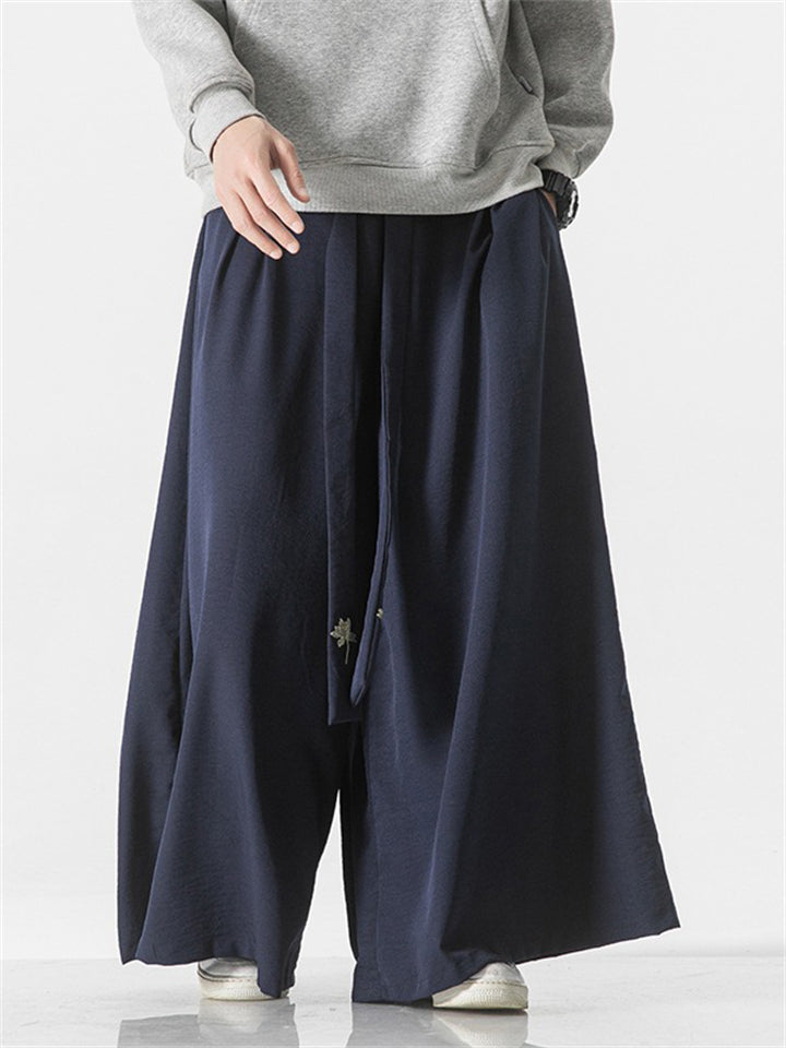 Men's Japanese Style Vintage Solid Color Texture Scimitar Pants