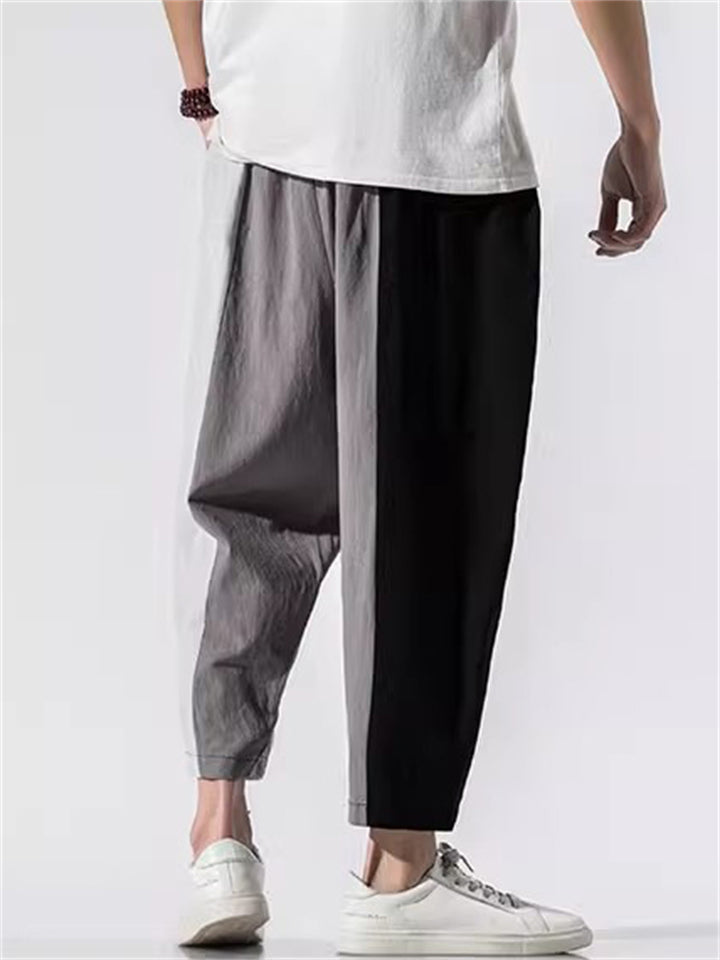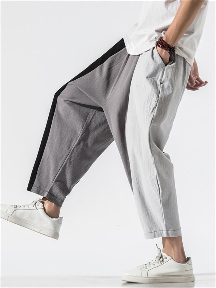 Male Contrast Color Striped Fashion Cotton Linen Pants