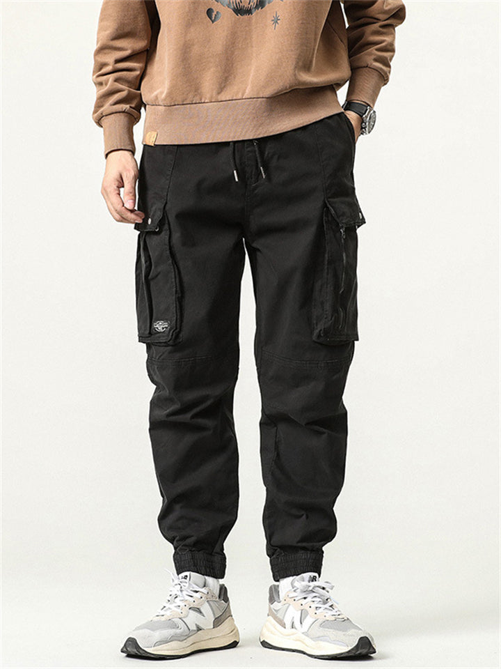 Male Fashion Streetwear Multi-pocket Drawstring Cargo Pants