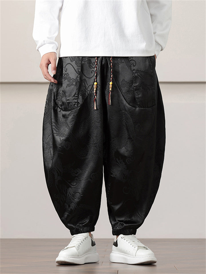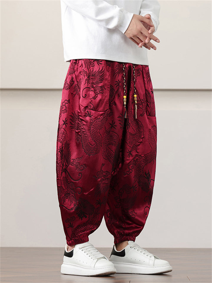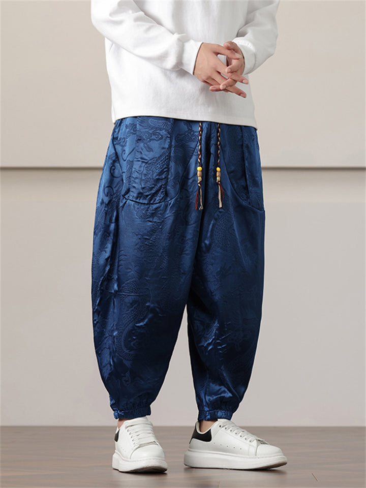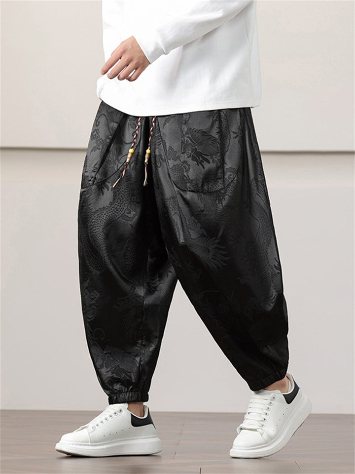 Male Loong Graphic Ankle-tied Ice Silk Lantern Pants