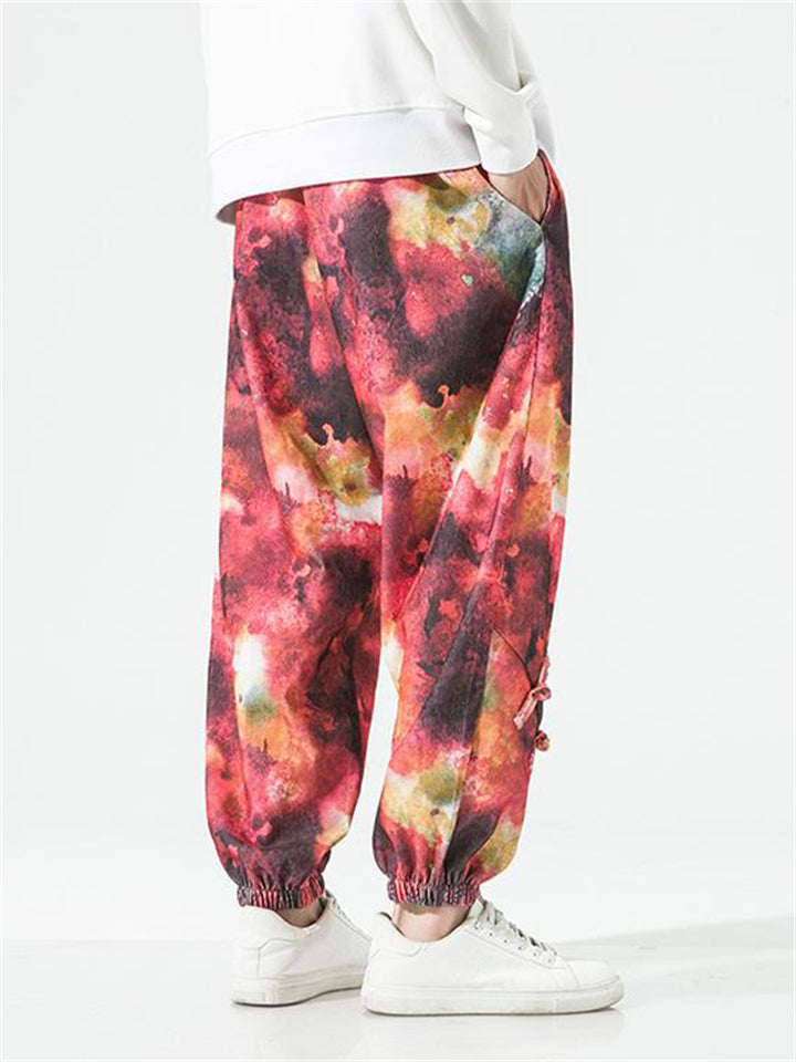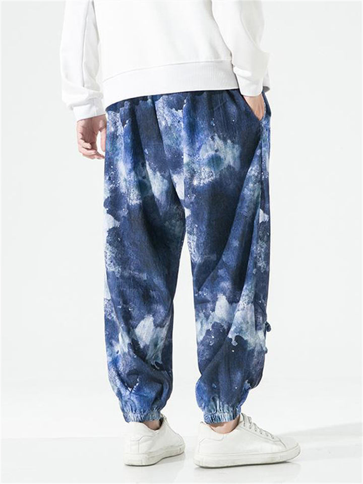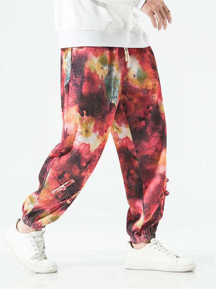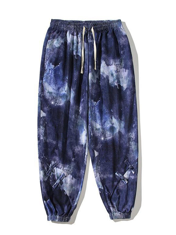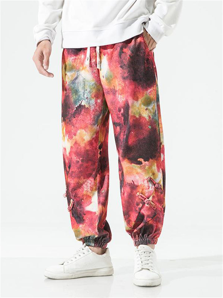 Male Loose Fit Drawstring Tie Dye Print Pants