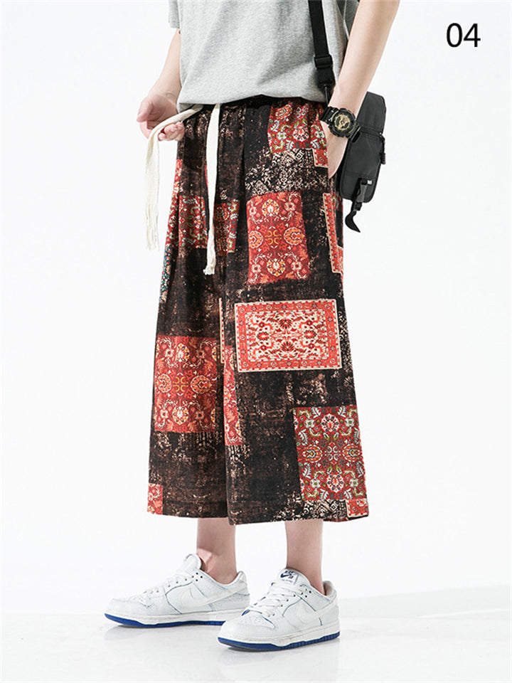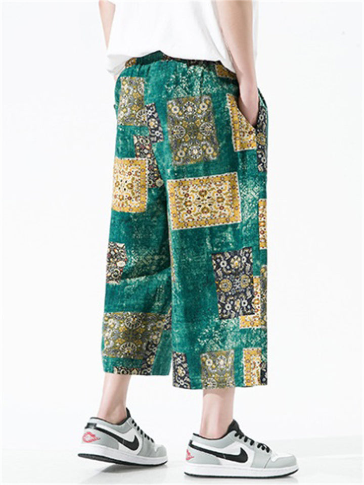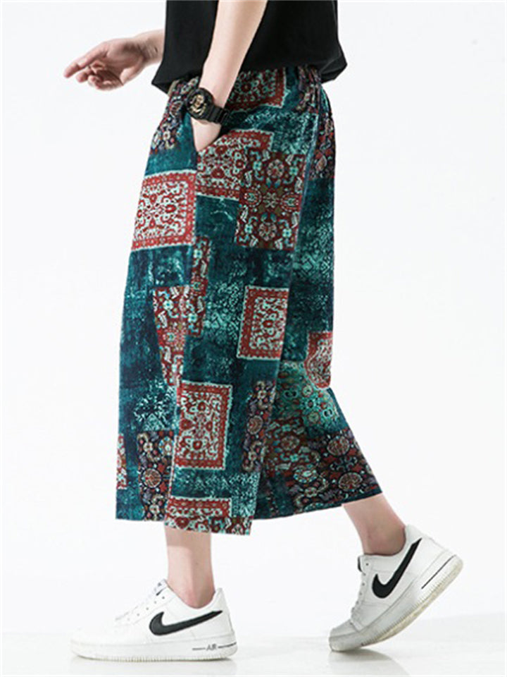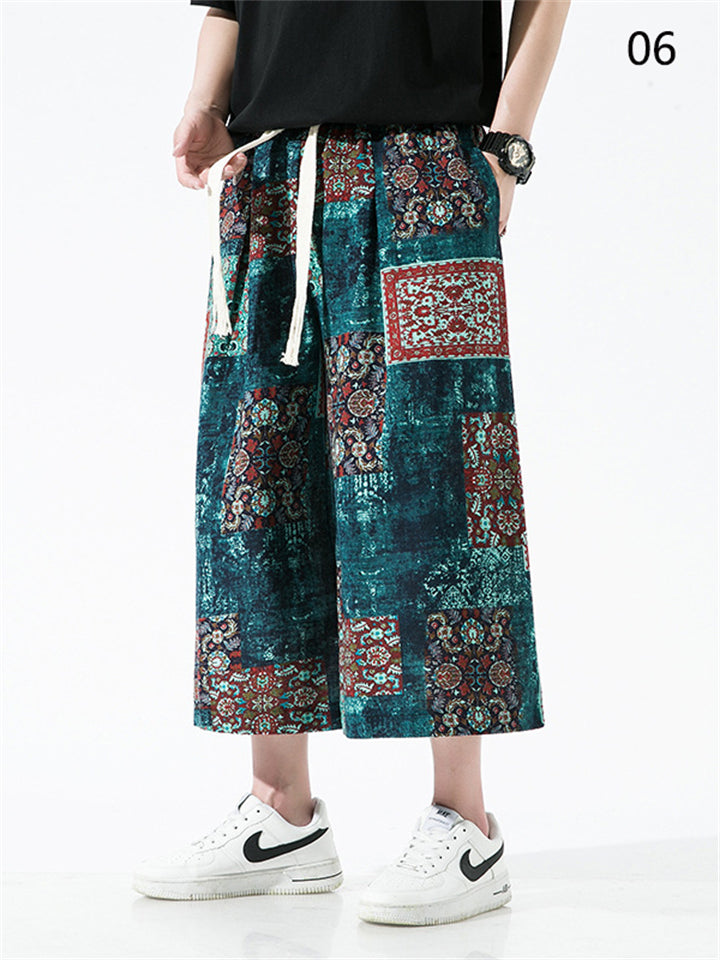 Men's Summer Ethnic Style Beach Bloomers Drop Crotch Capri Pants