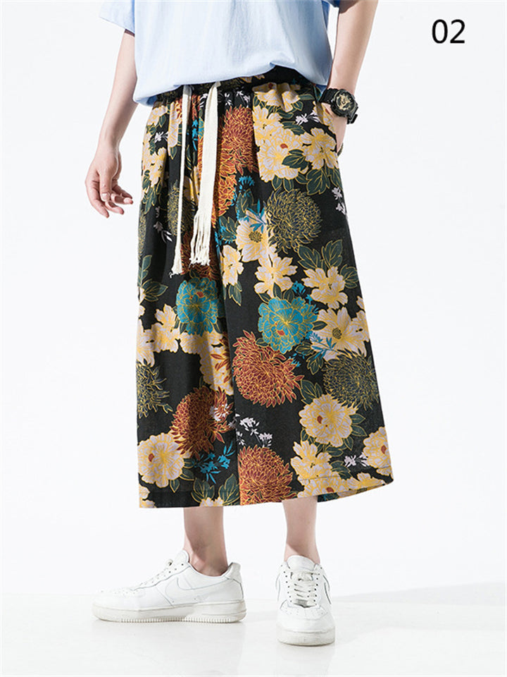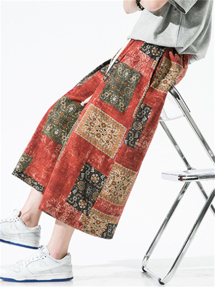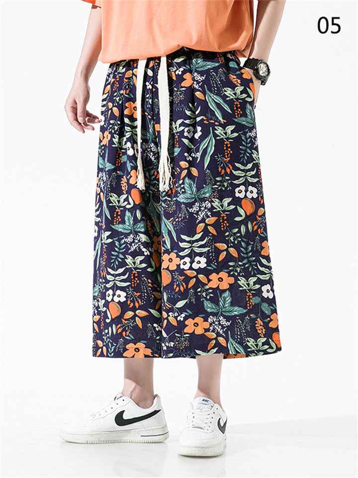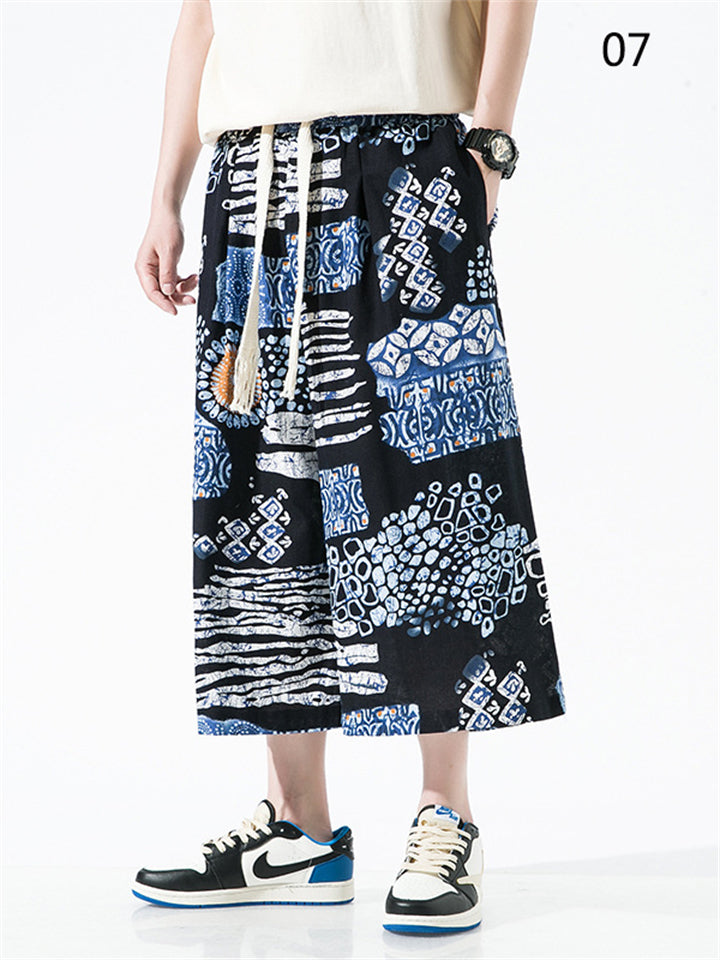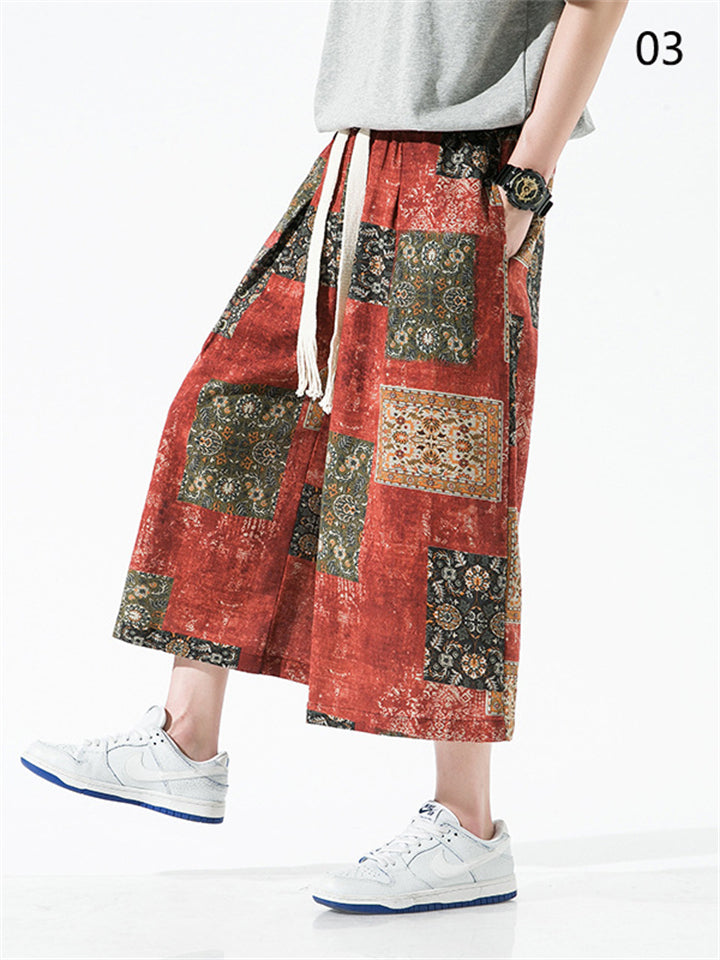 Men's Summer Ethnic Style Beach Bloomers Drop Crotch Capri Pants