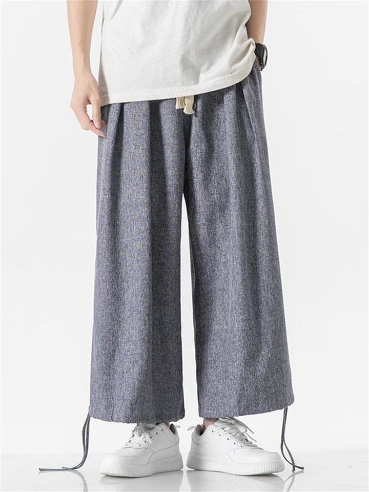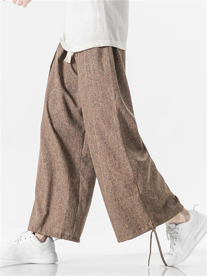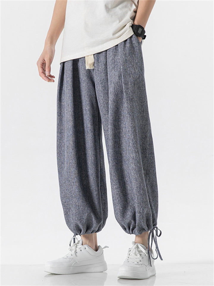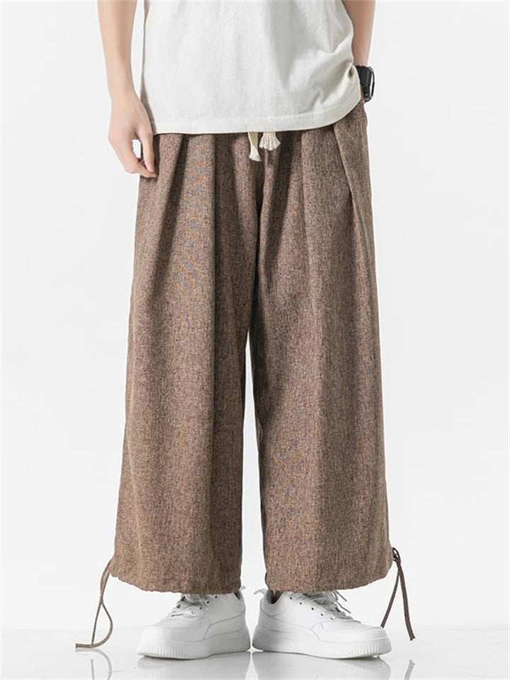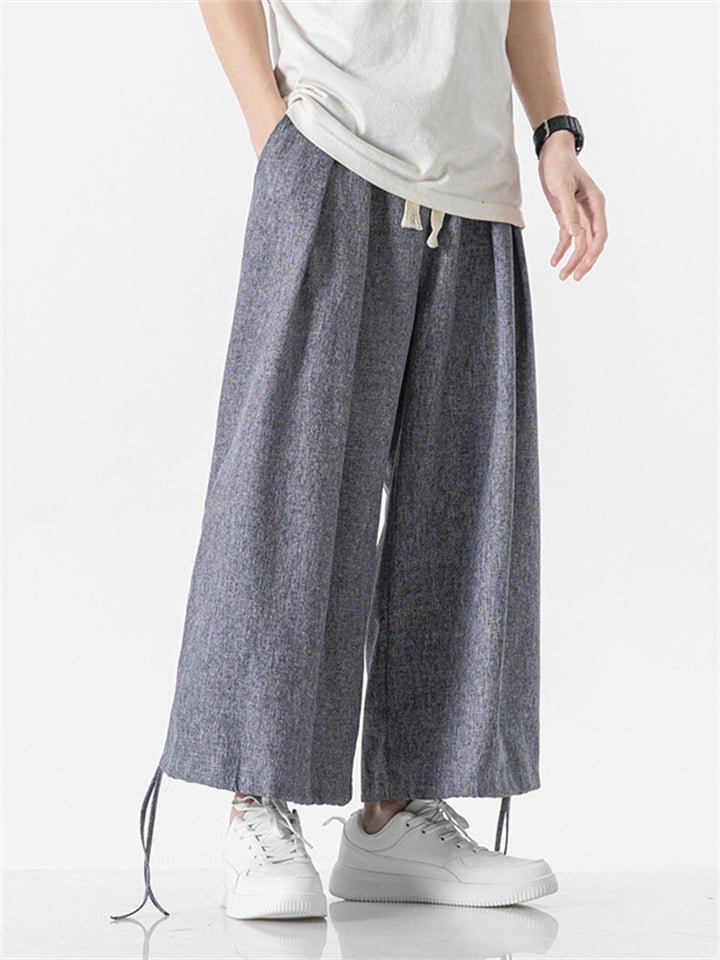 Vintage Japanese Street Style Drawstring Linen Pants for Men