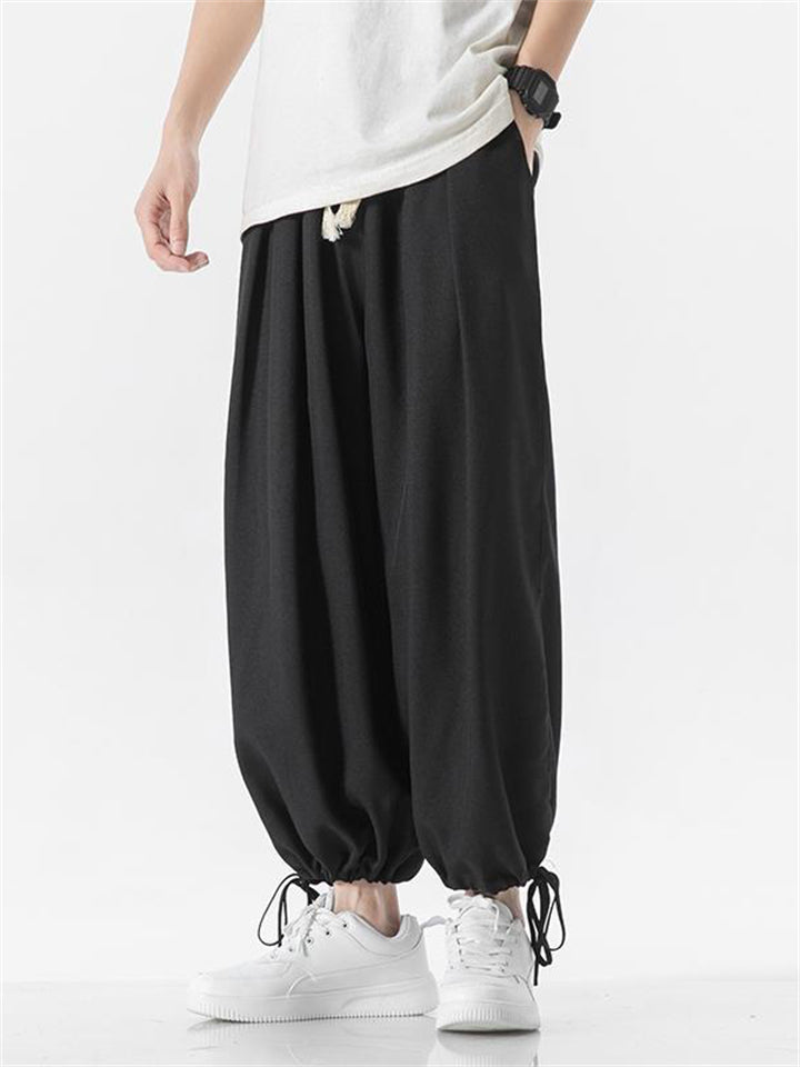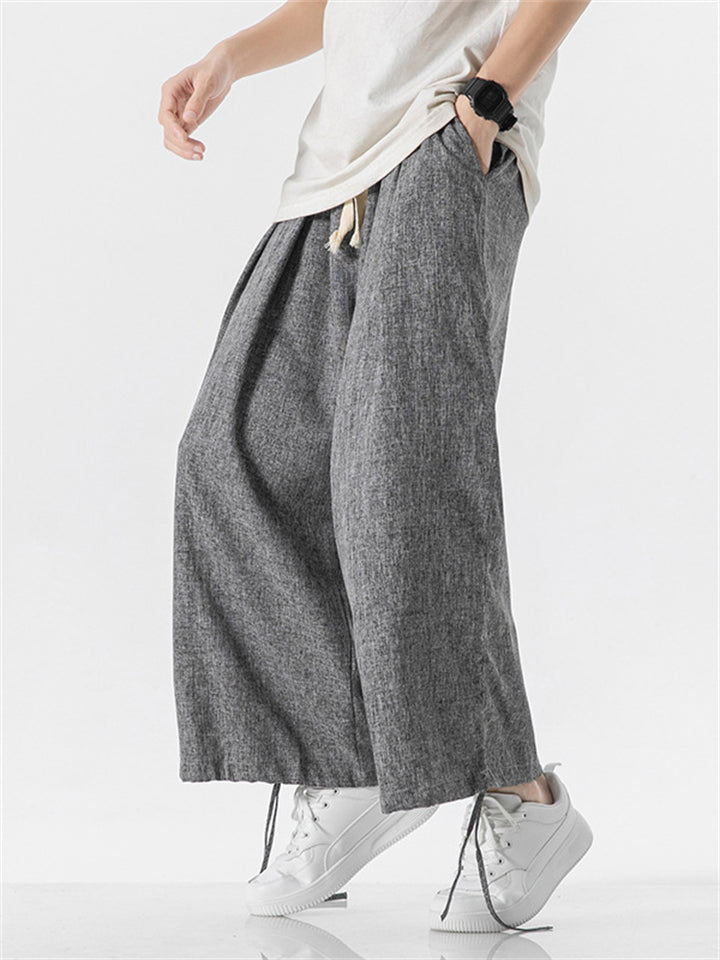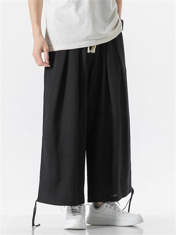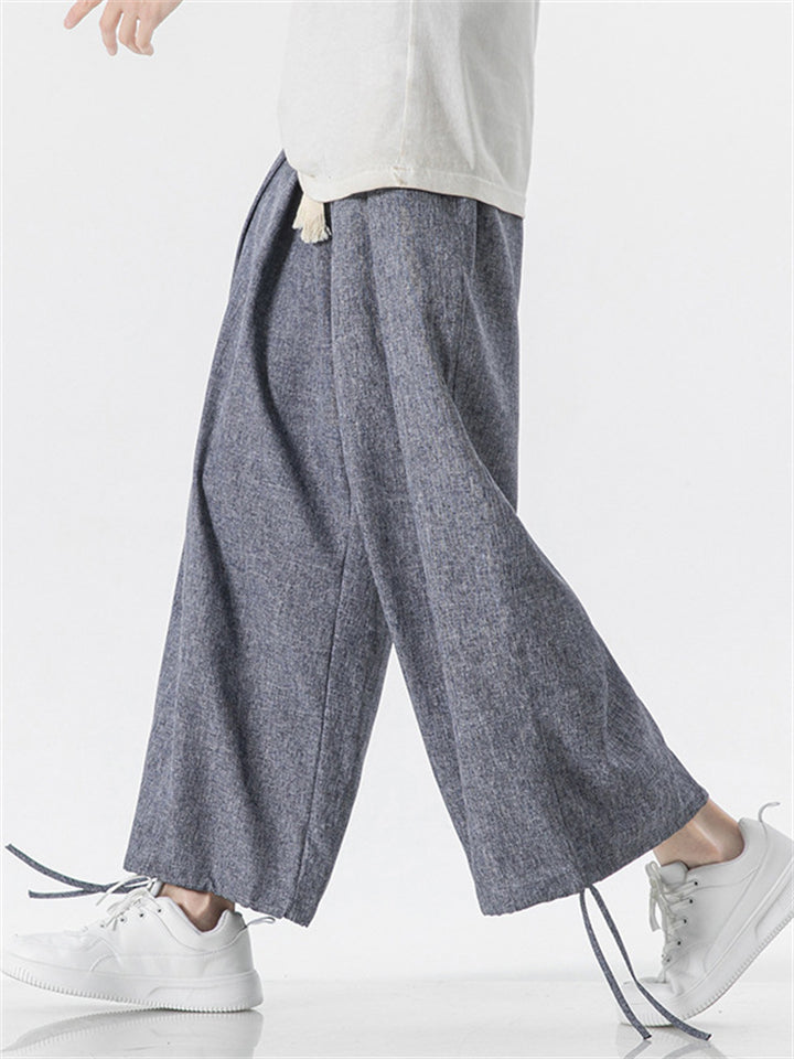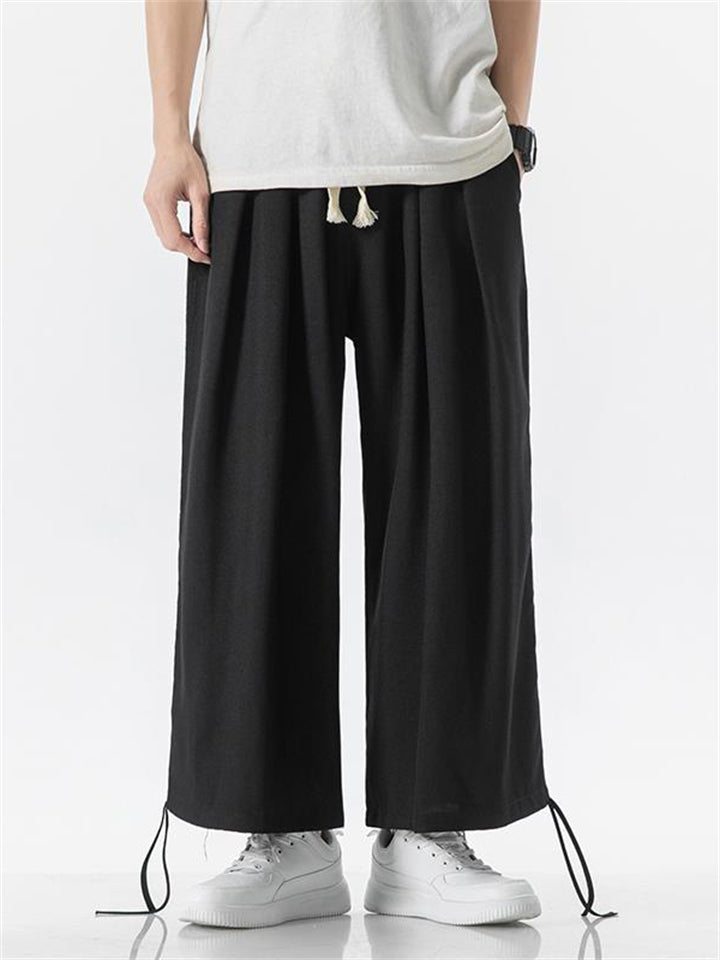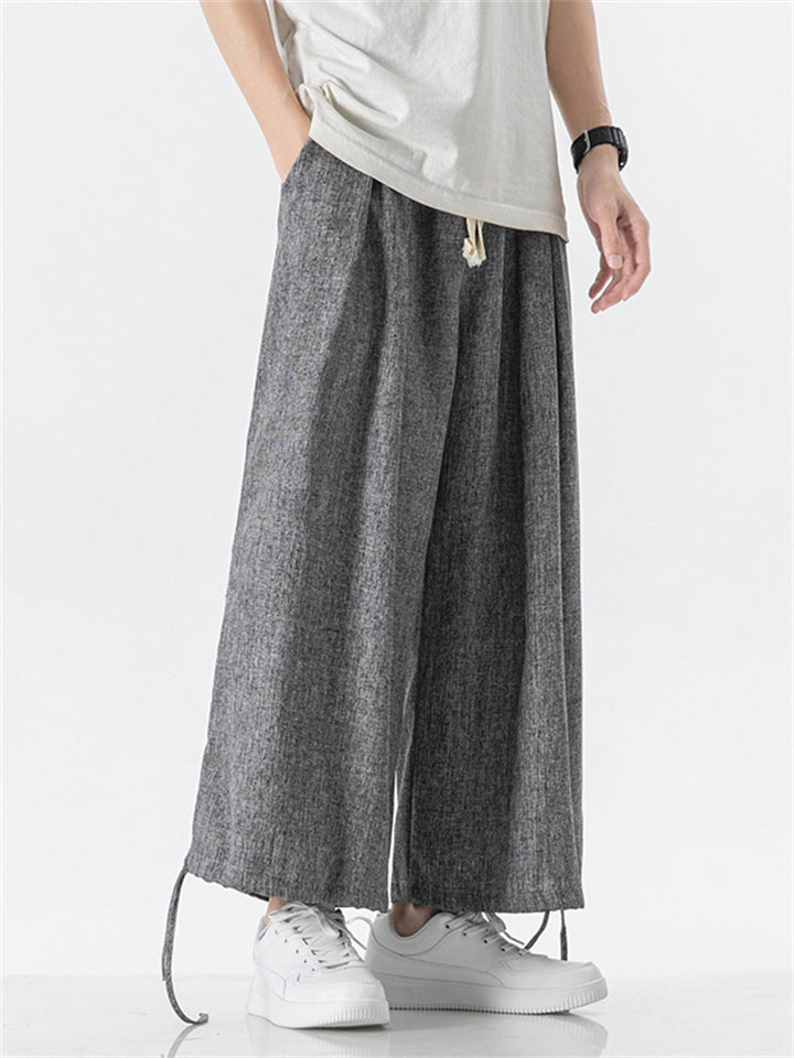 Vintage Japanese Street Style Drawstring Linen Pants for Men