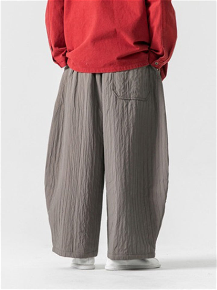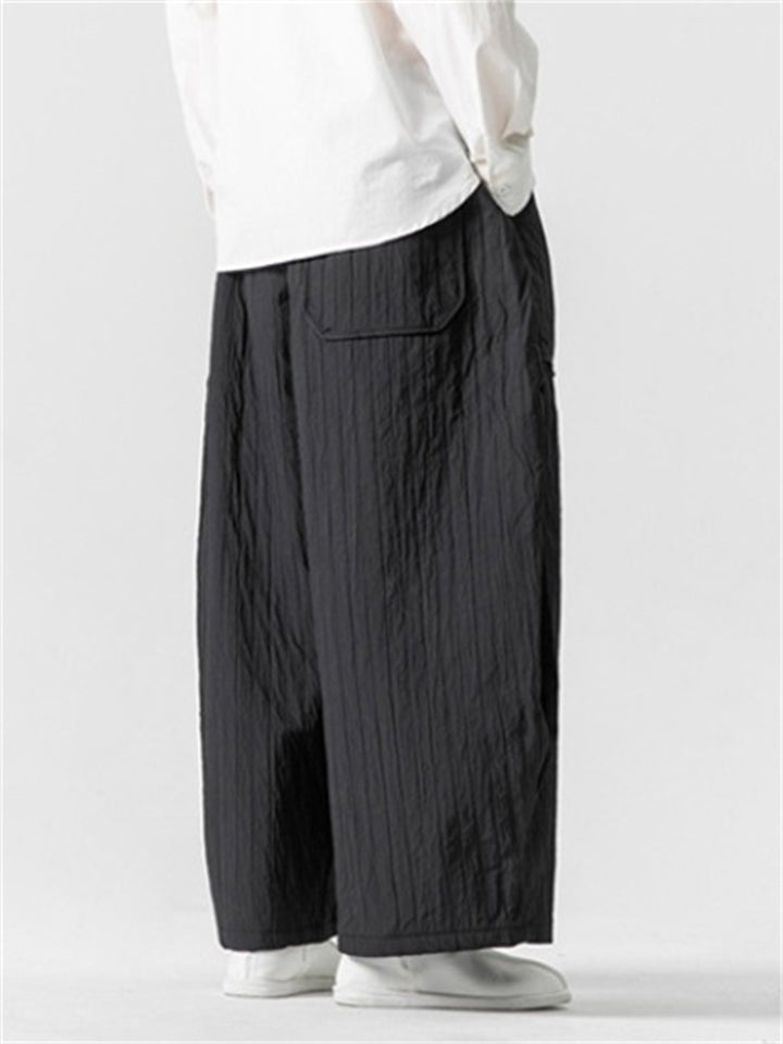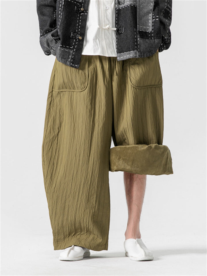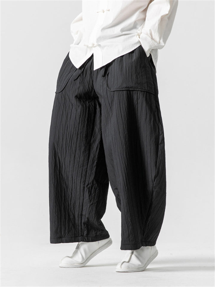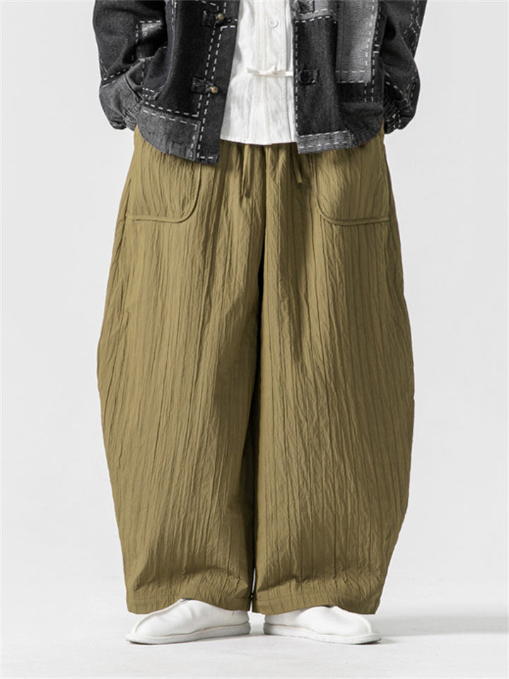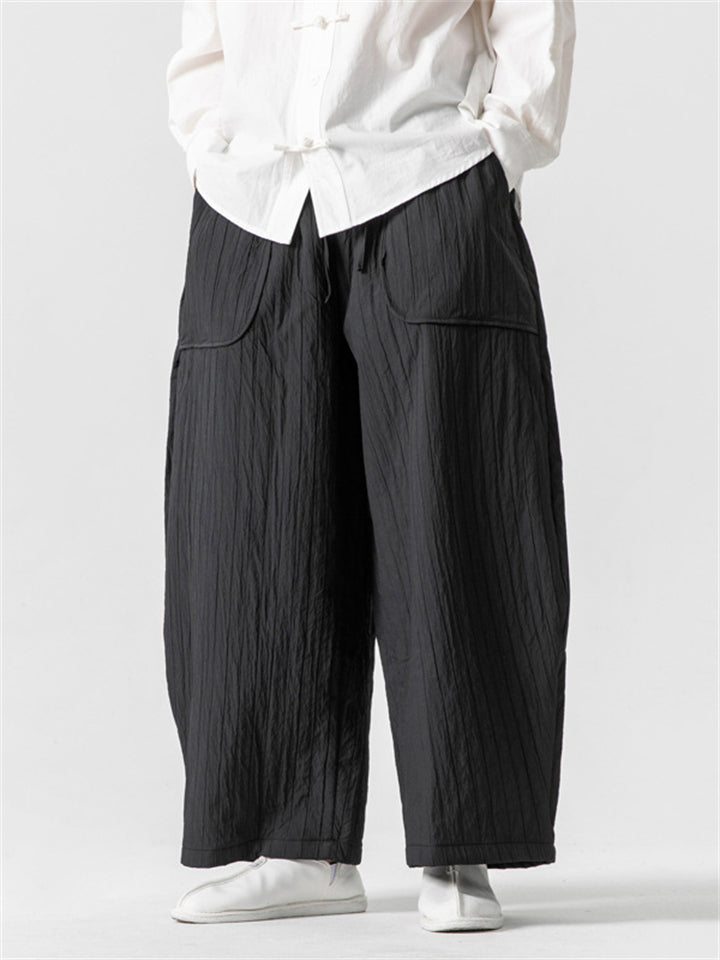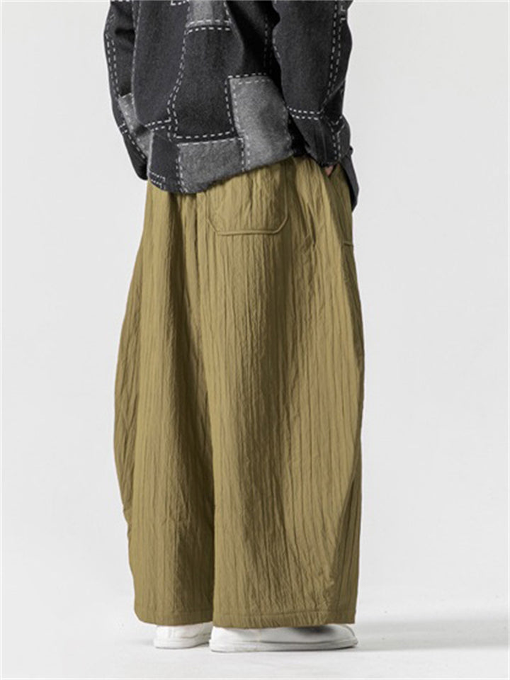 Men's Japanese Style Vintage Solid Color Texture Scimitar Pants