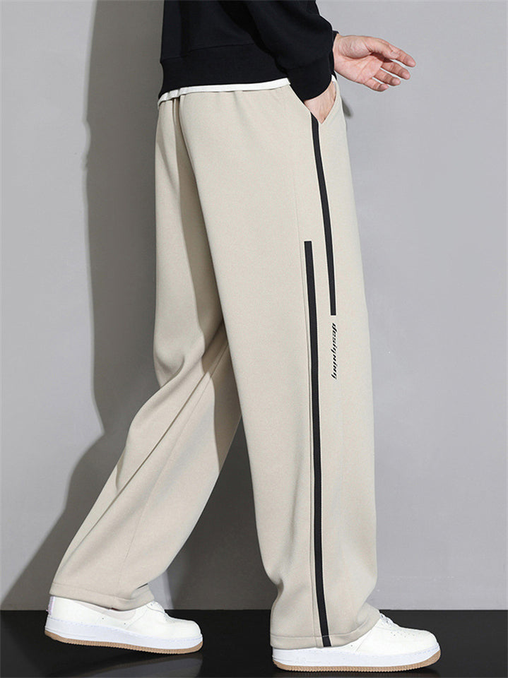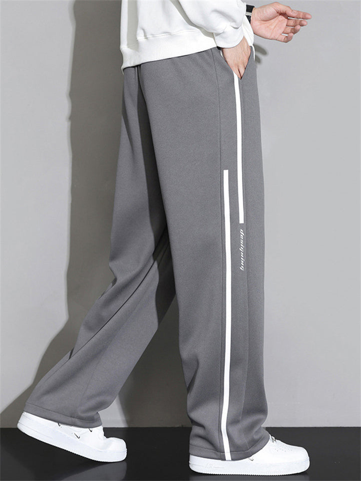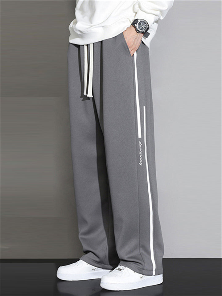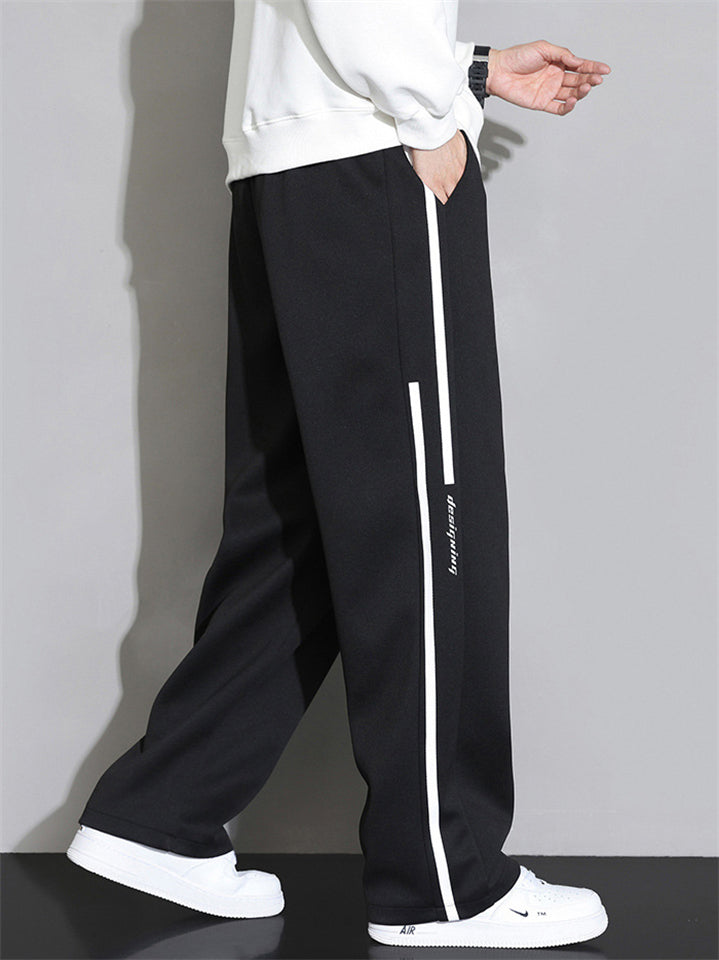 Men's Autumn Loose Sweatpants with White Stripes and Letters Print