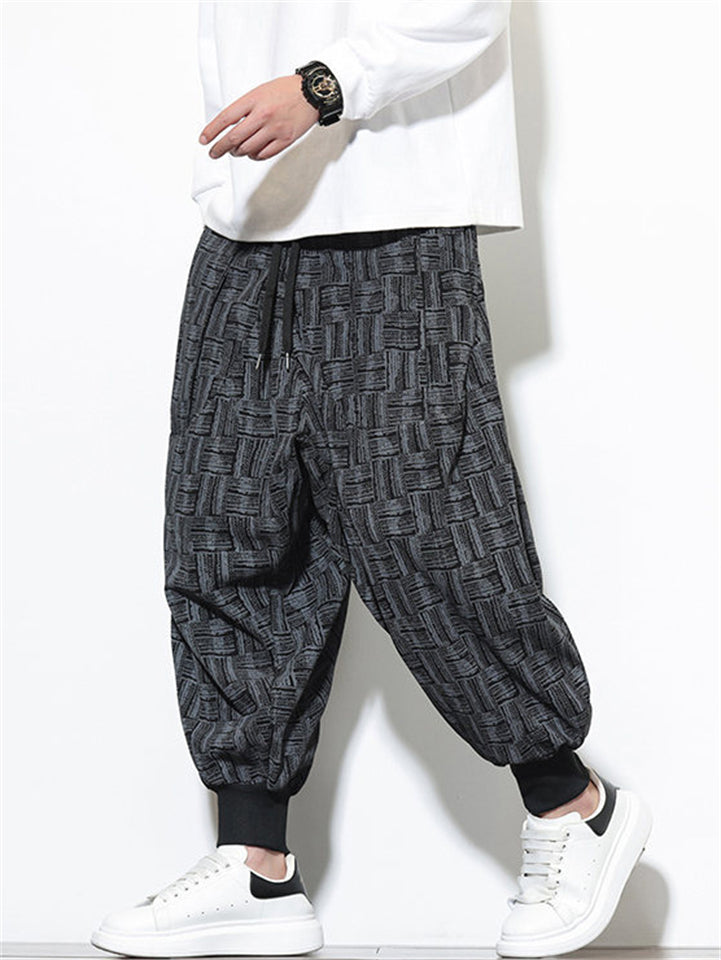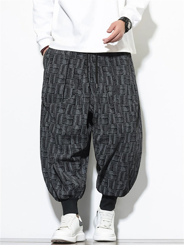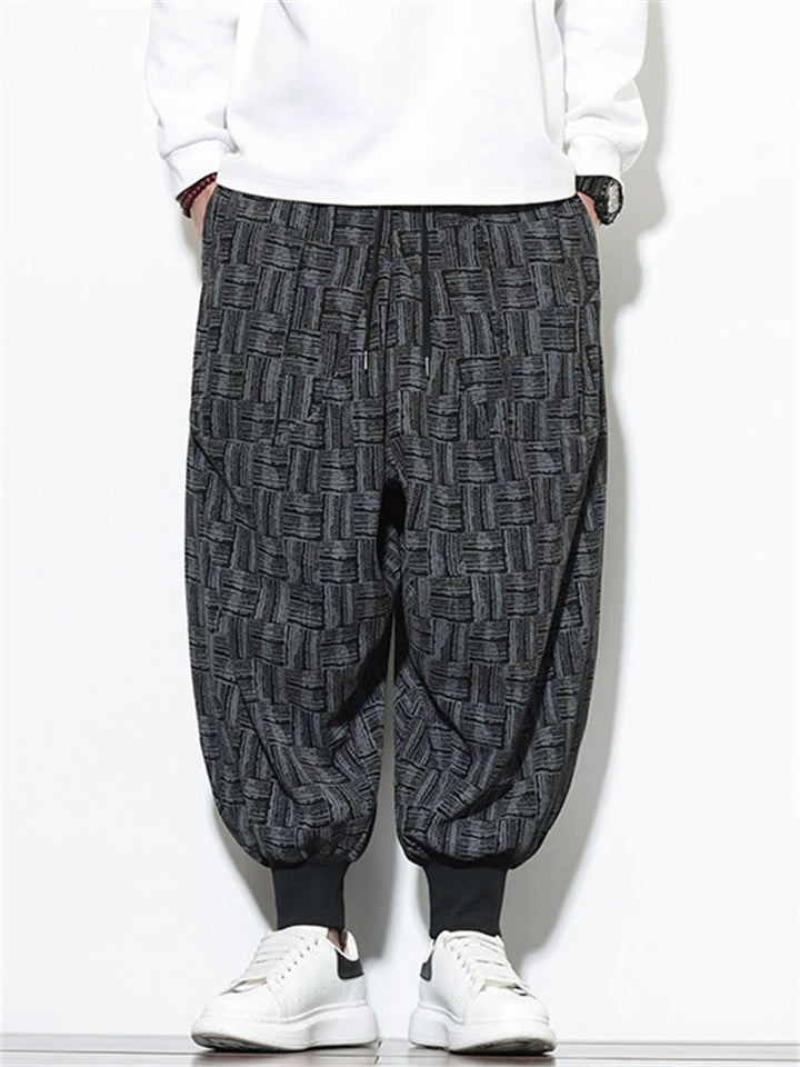 Men's Autumn Casual Geometric Texture Wide Leg Jogger Pants