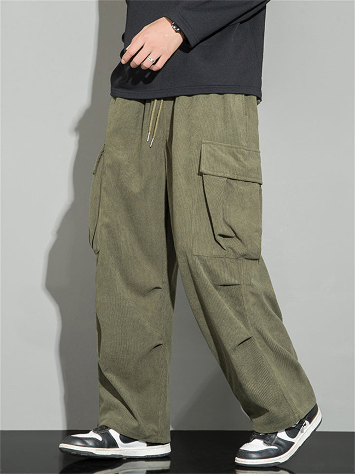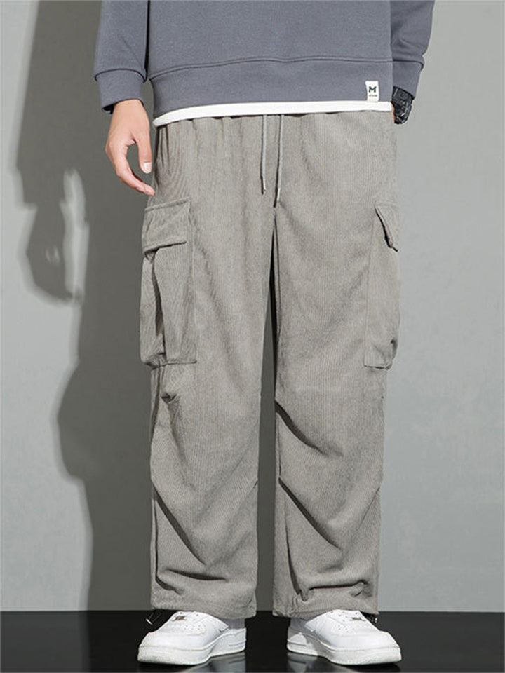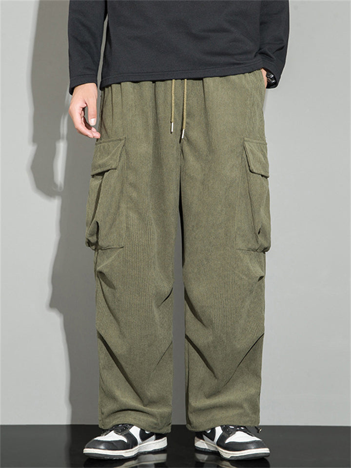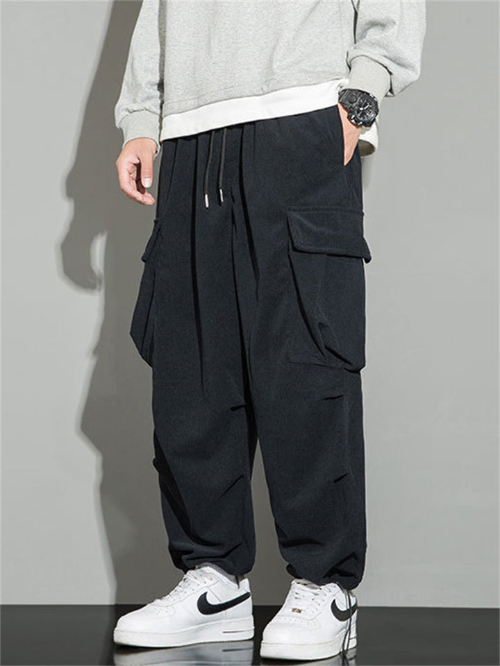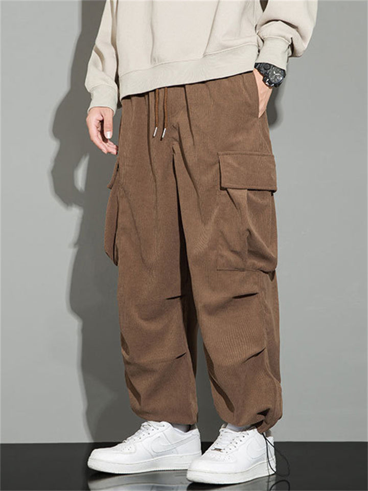 Men's Autumn Corduroy Multi-Pocket Drawstring Cargo Pants
