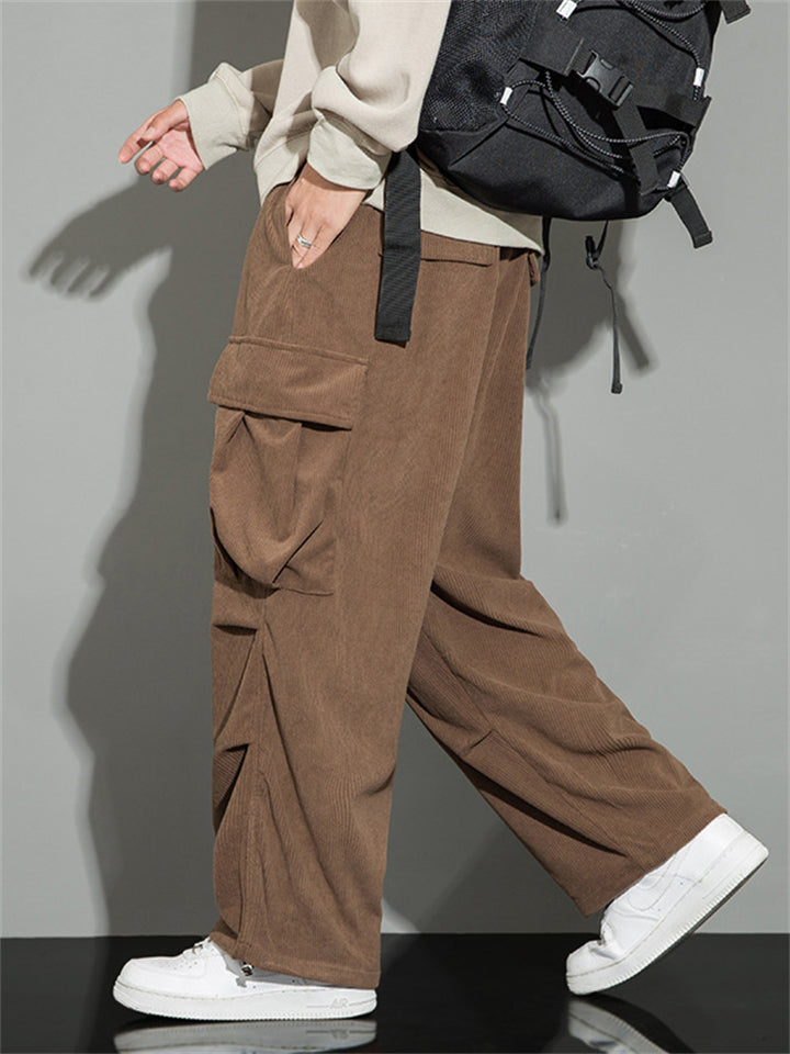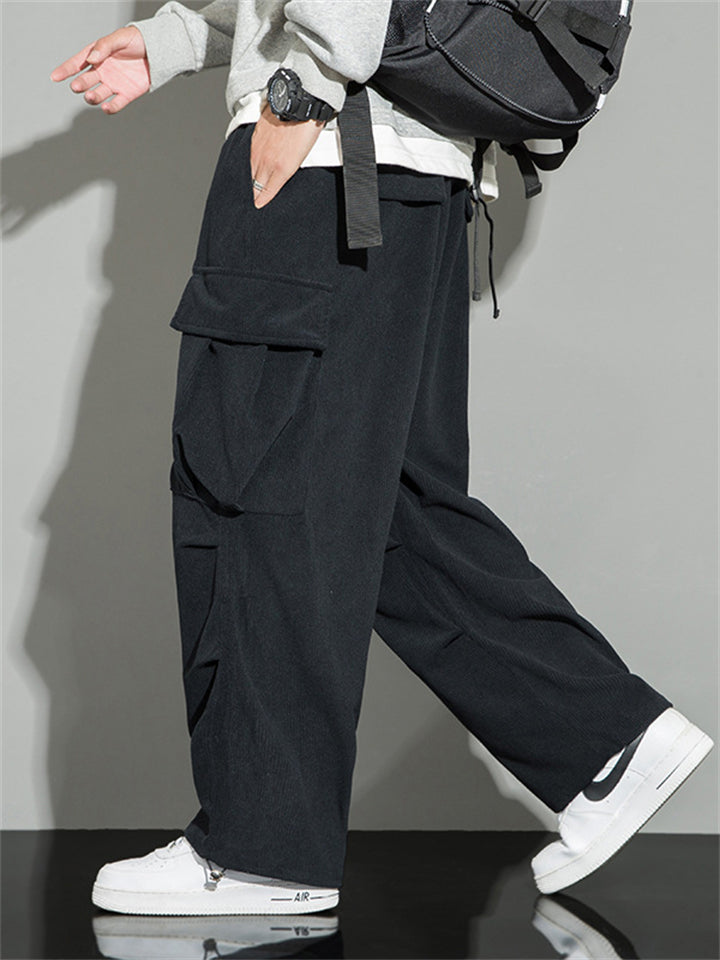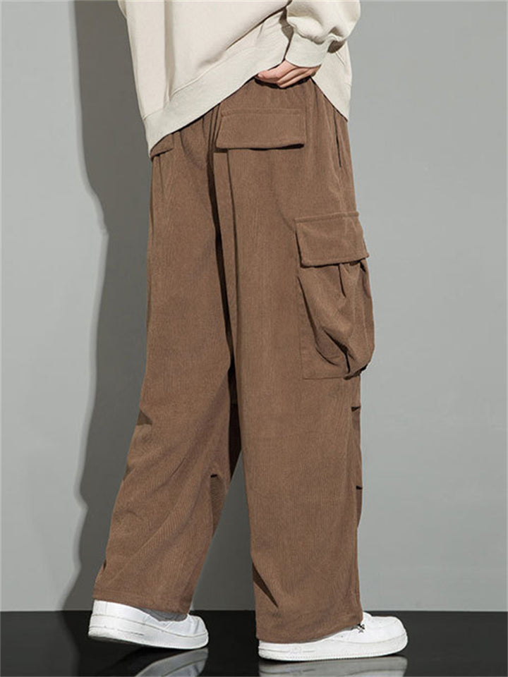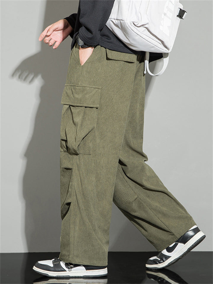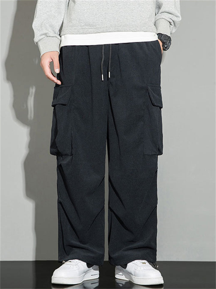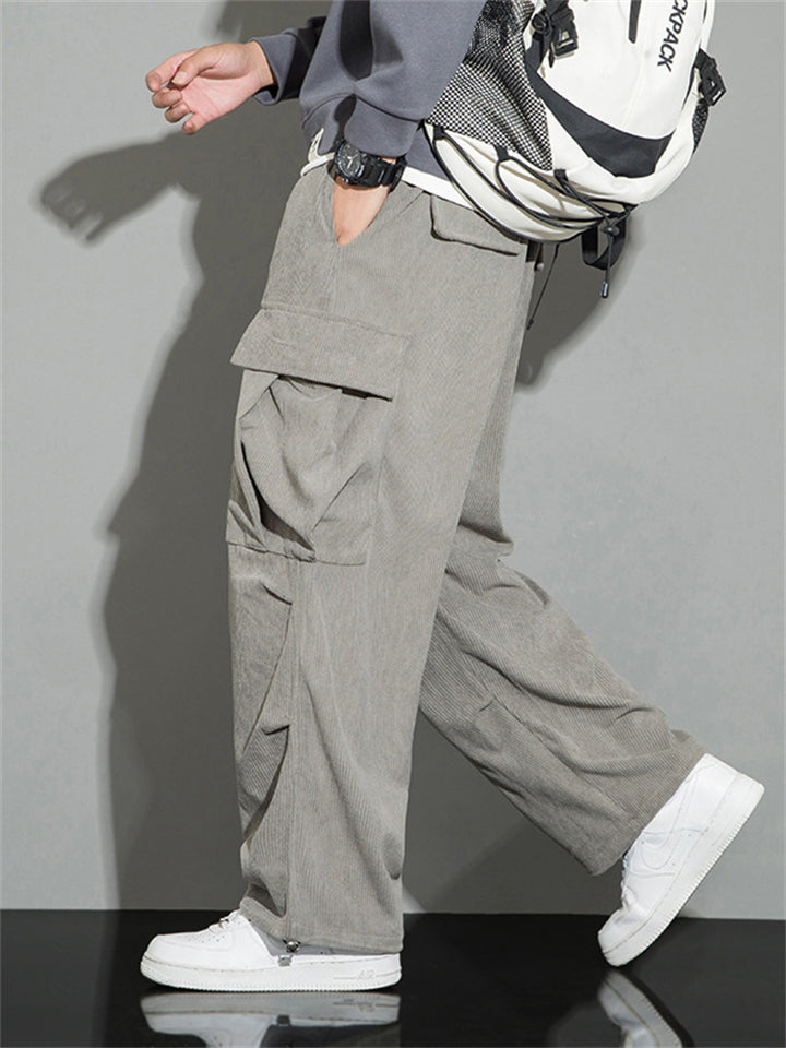 Men's Autumn Corduroy Multi-Pocket Drawstring Cargo Pants