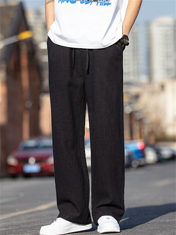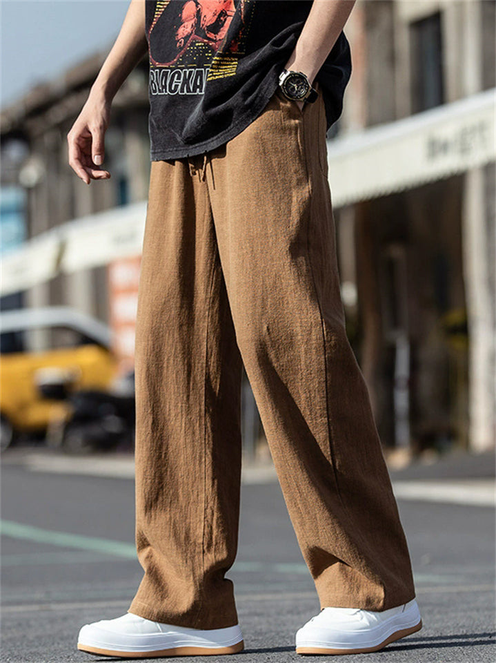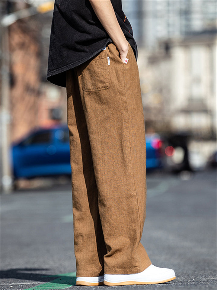 Vintage Japanese Street Style Drawstring Linen Pants for Men