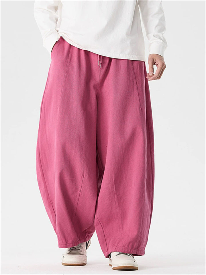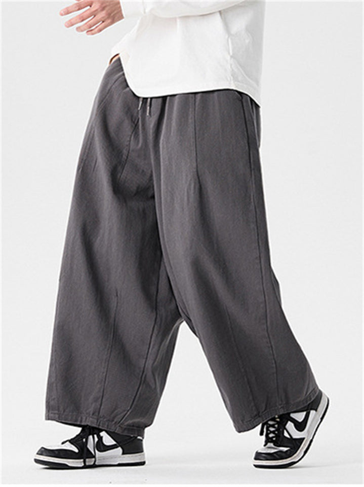 Vintage Japanese Street Style Drawstring Linen Pants for Men