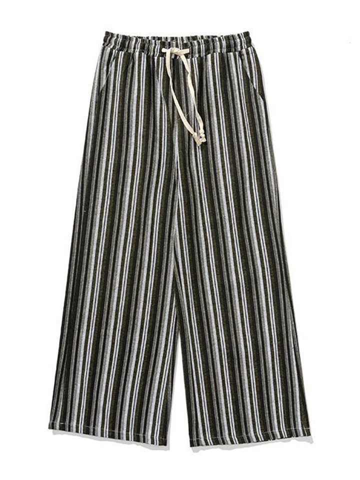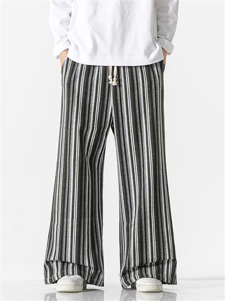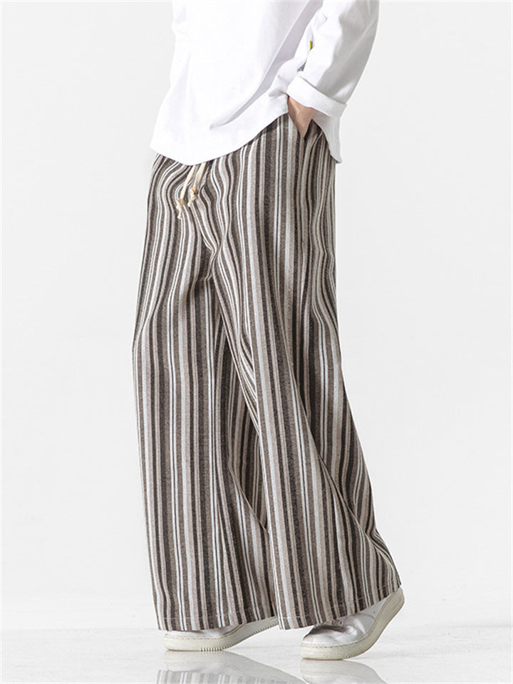 Men's Autumn Vintage Striped Drawstring Wide Leg Pants