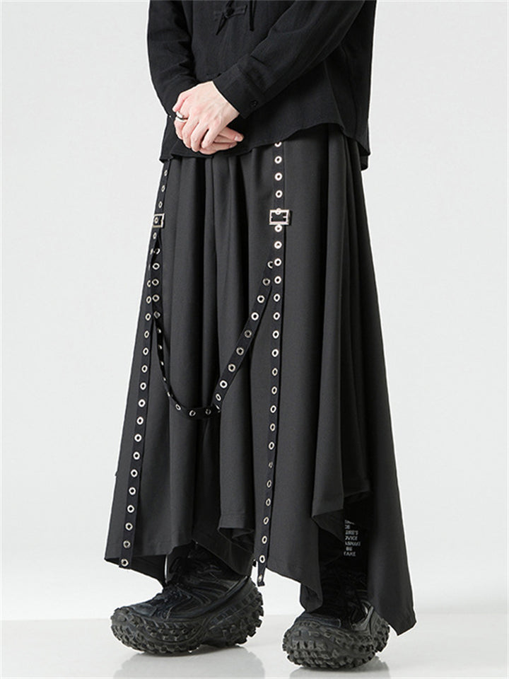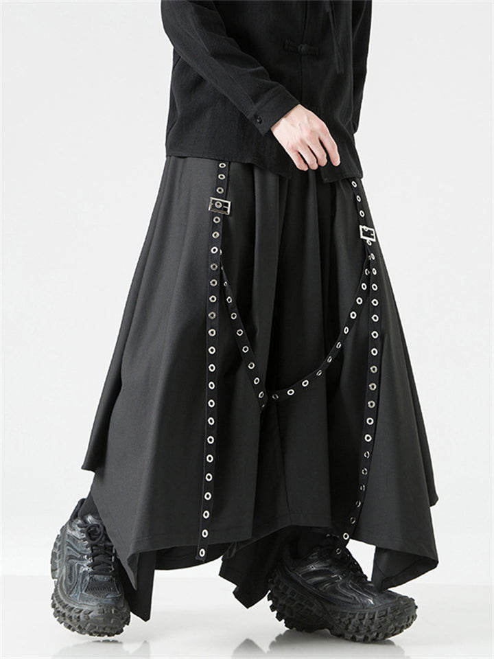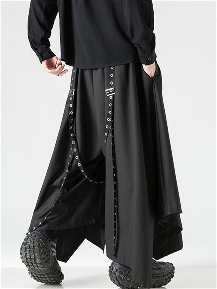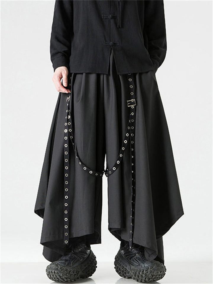 Men's Black Gothic Style Metal Rivet Webbing Wide Leg Pants