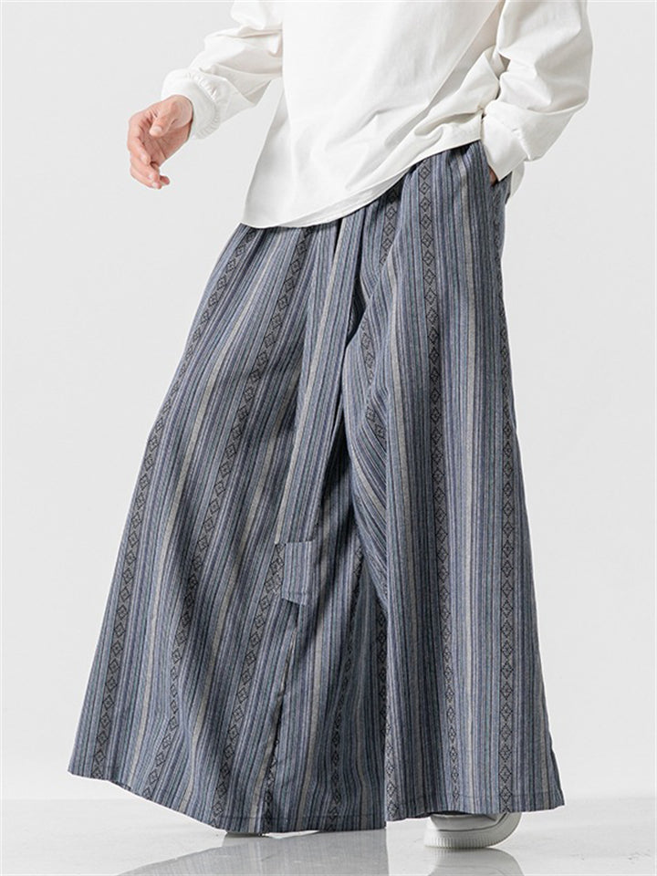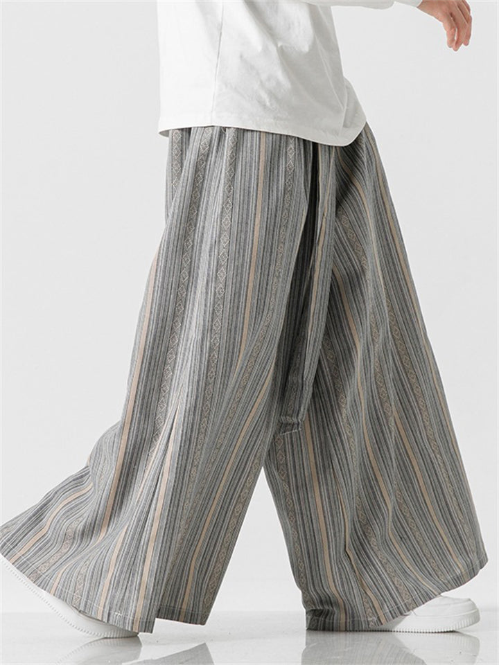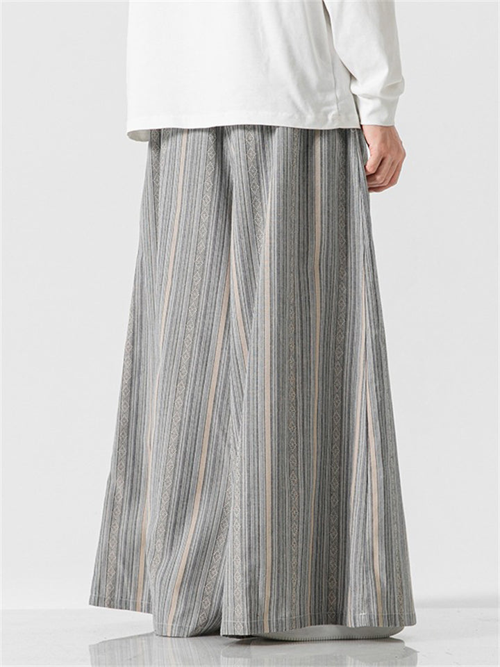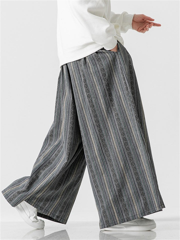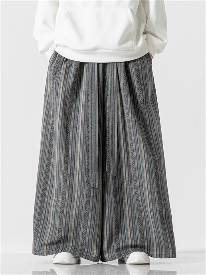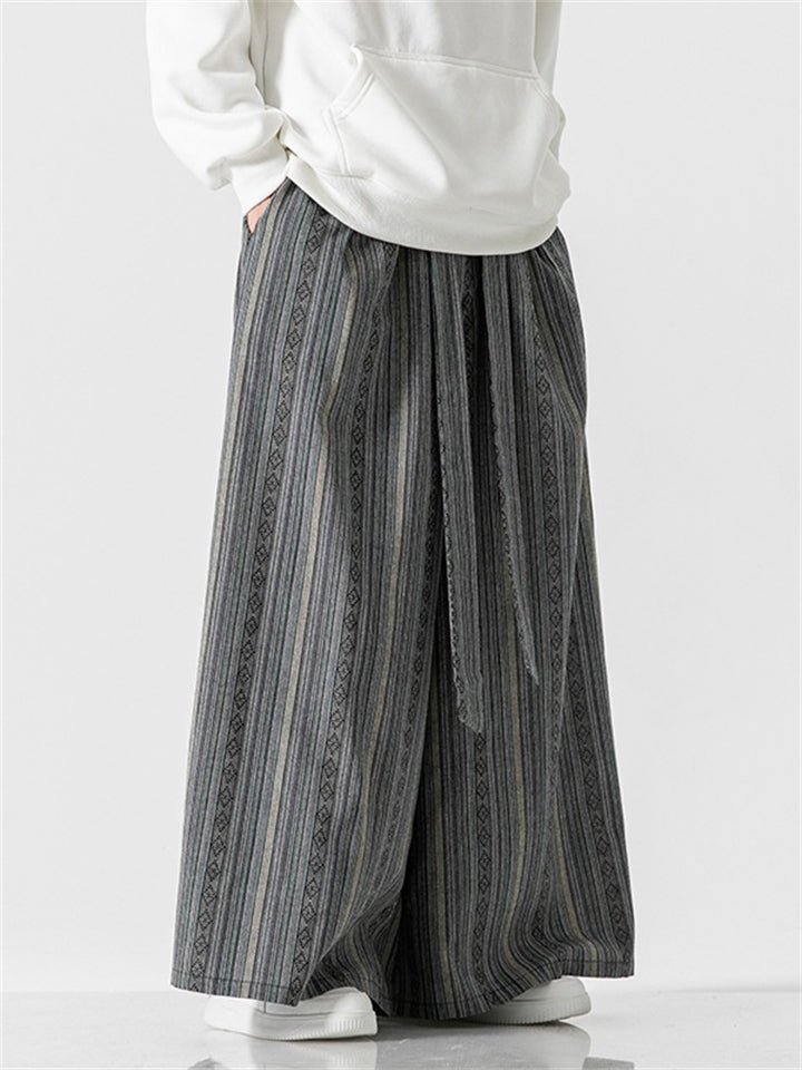 Men's Autumn Vintage Striped Drawstring Wide Leg Pants