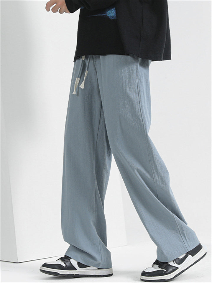 Men's Casual Cotton Solid Color Straight Wide Leg Pants