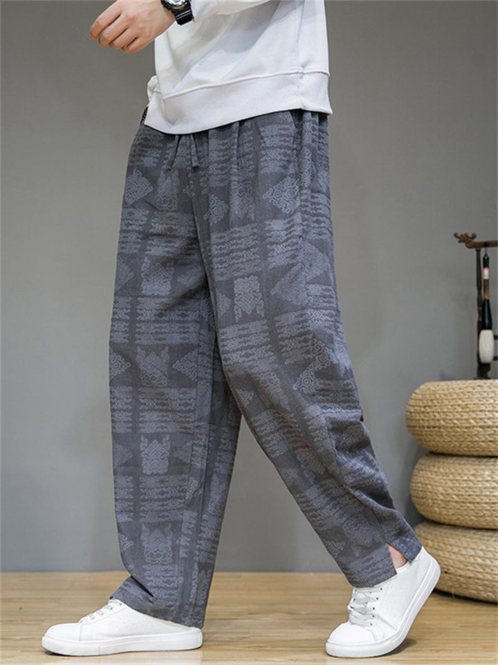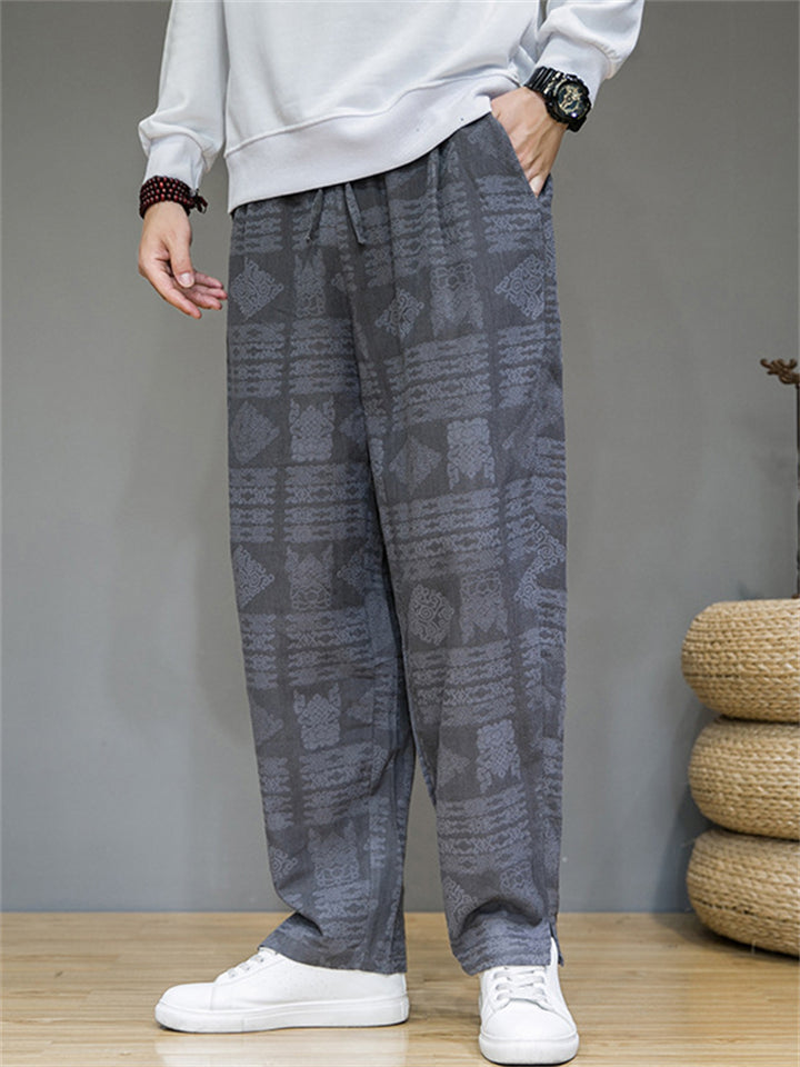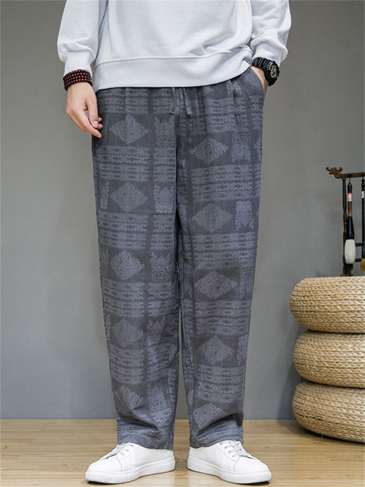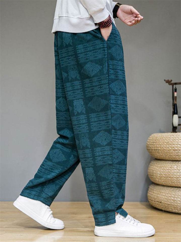 Men's Casual Retro Jacquard Straight Pants