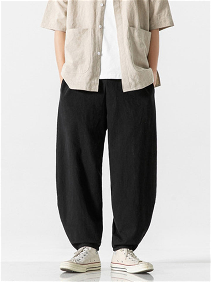 Vintage Japanese Street Style Drawstring Linen Pants for Men