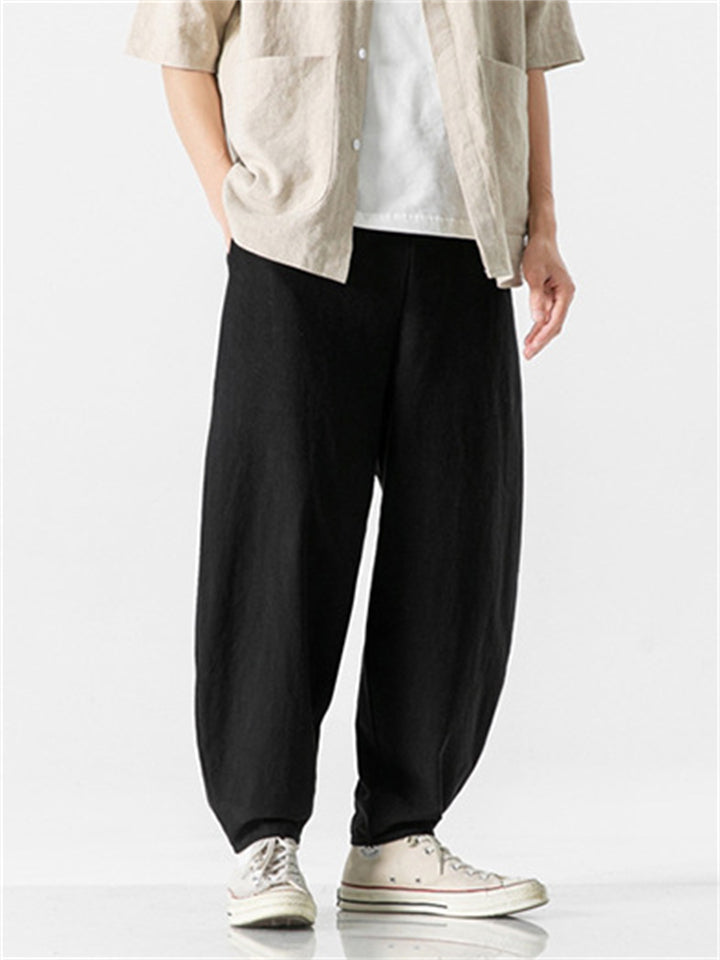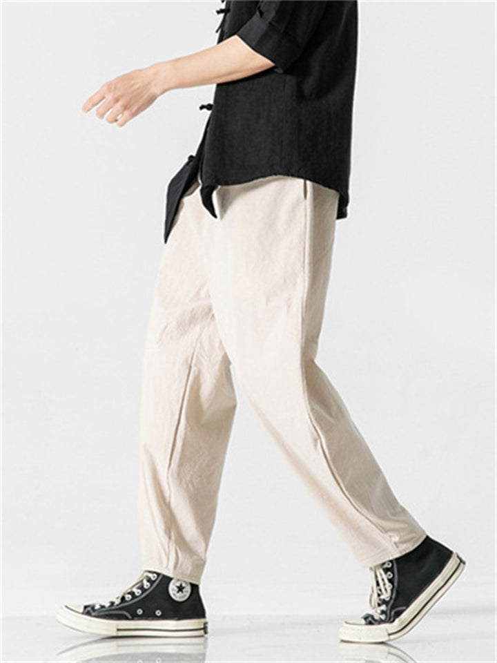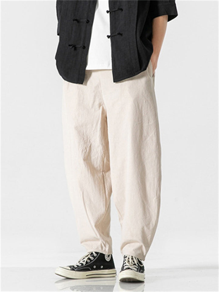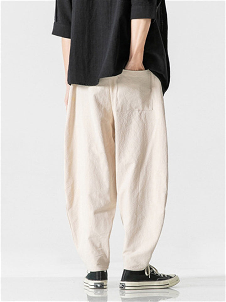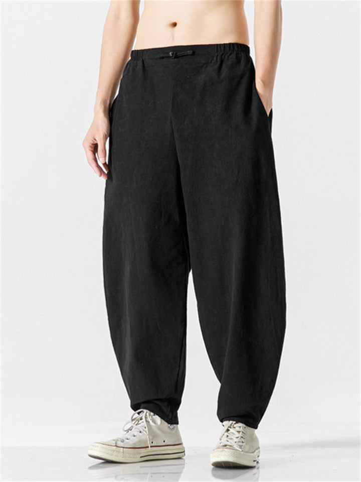 Men's Chinese Style Cotton Linen Baggy Casual Pants