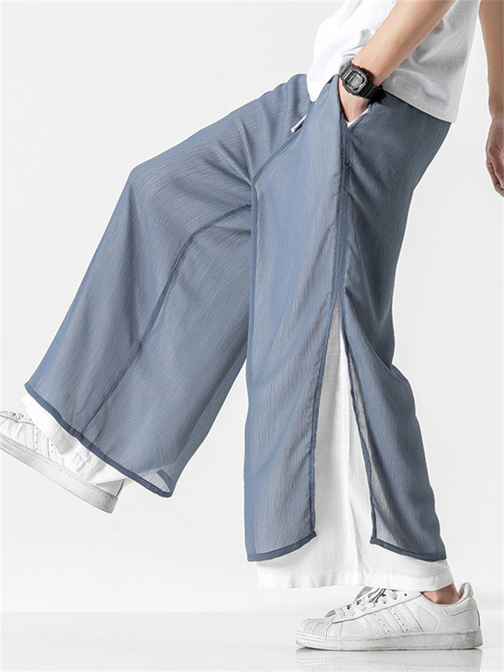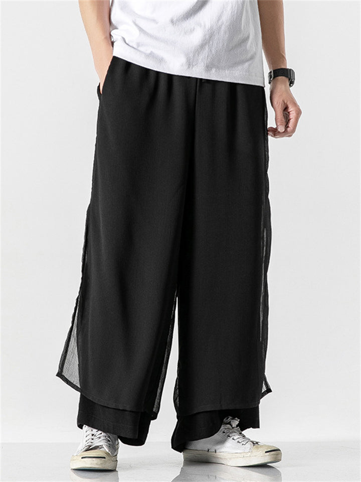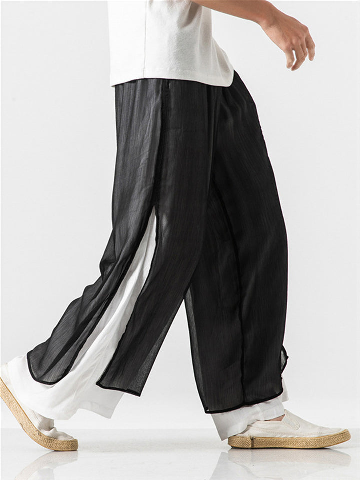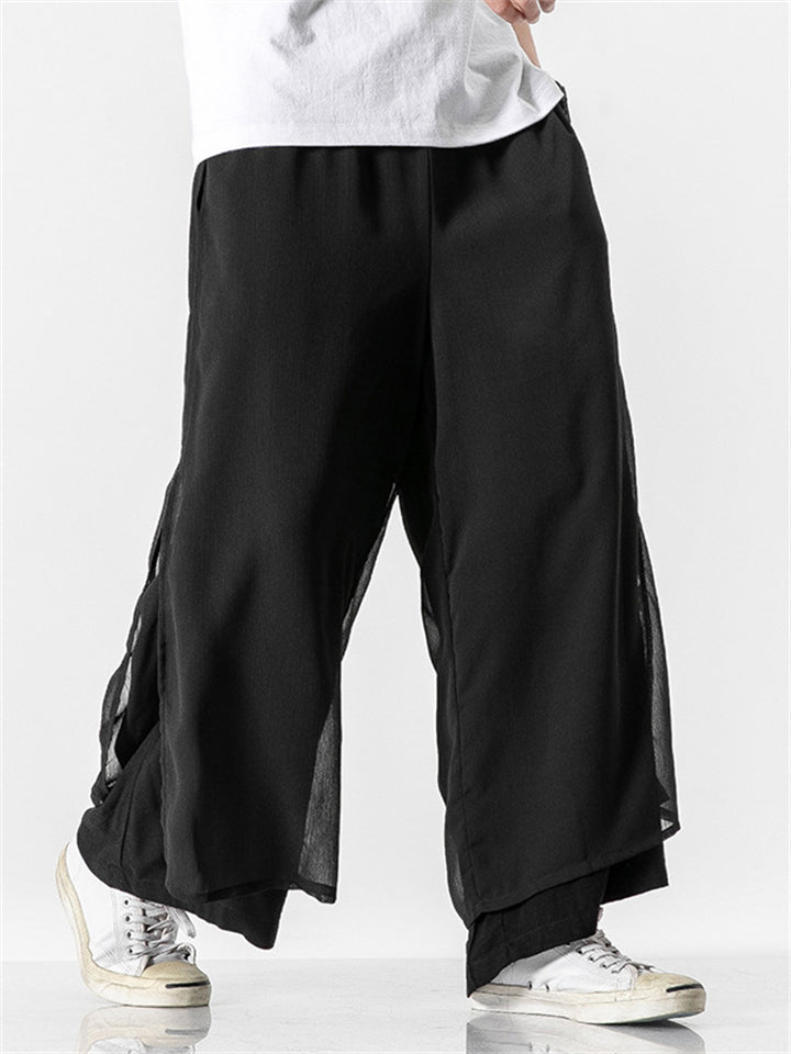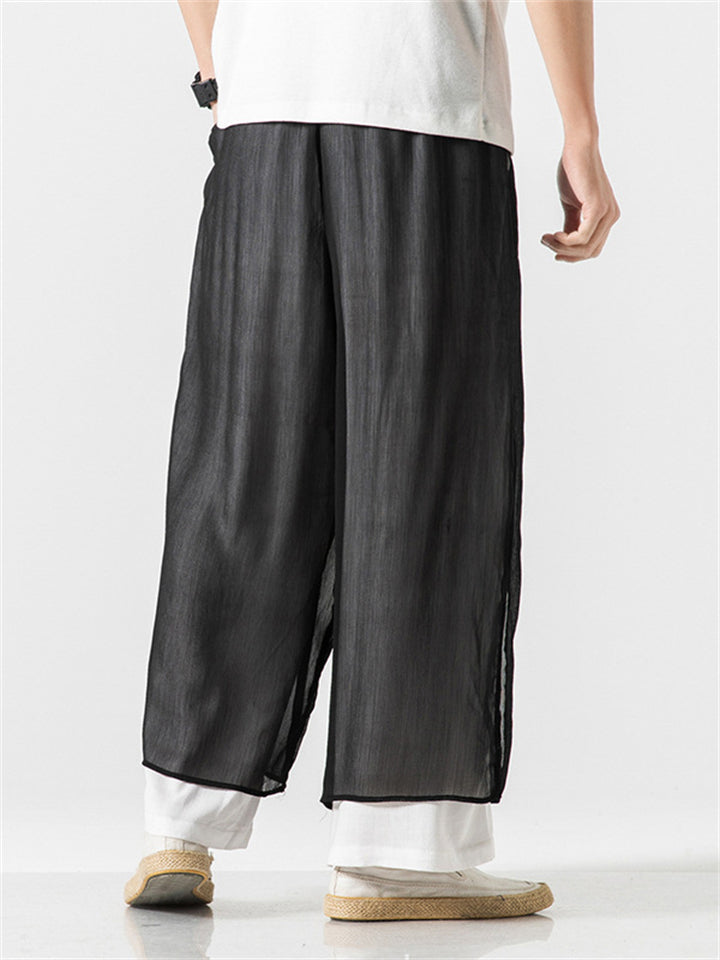 Men's Chinese Style Flowy Double Layer Mesh Cotton Pants
