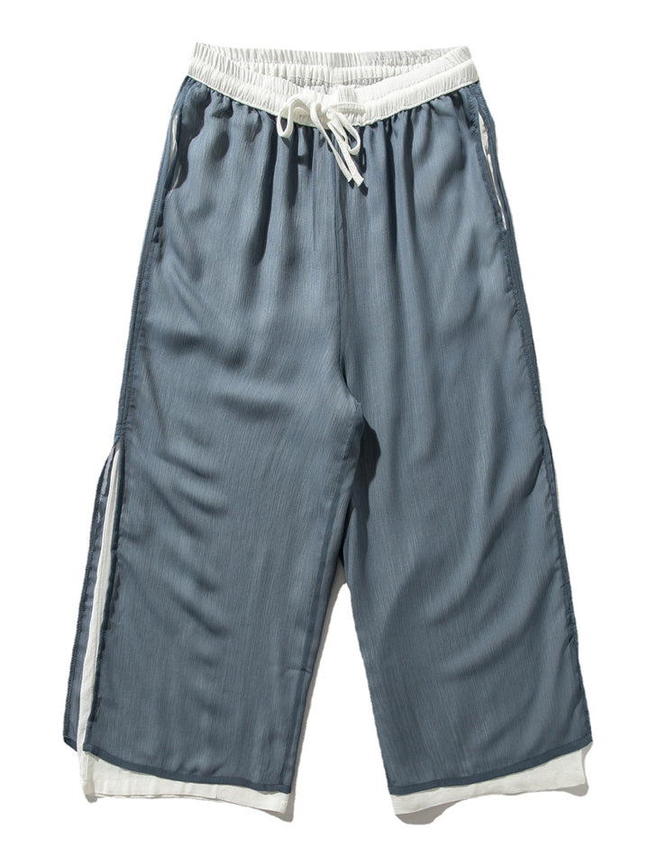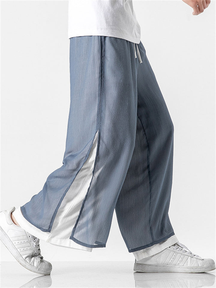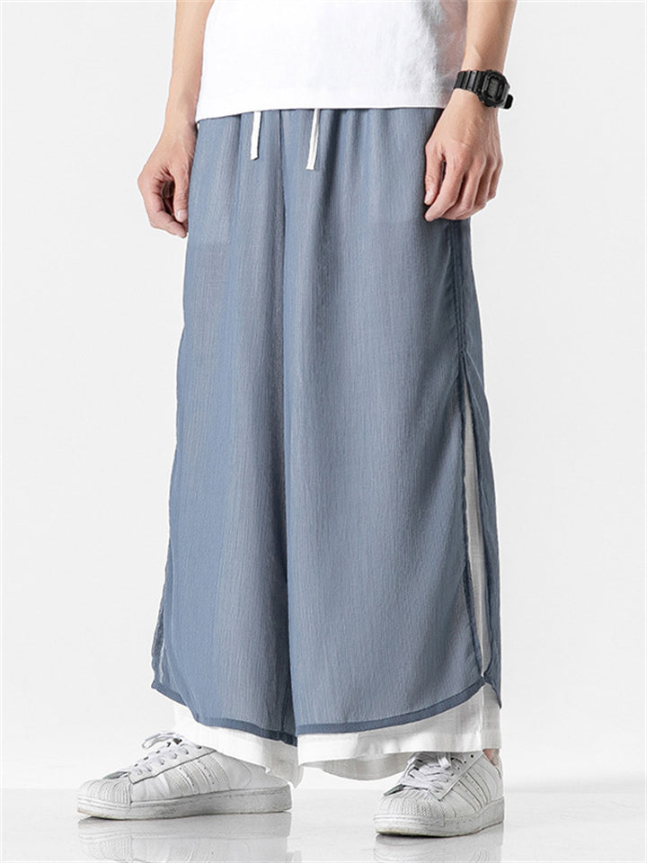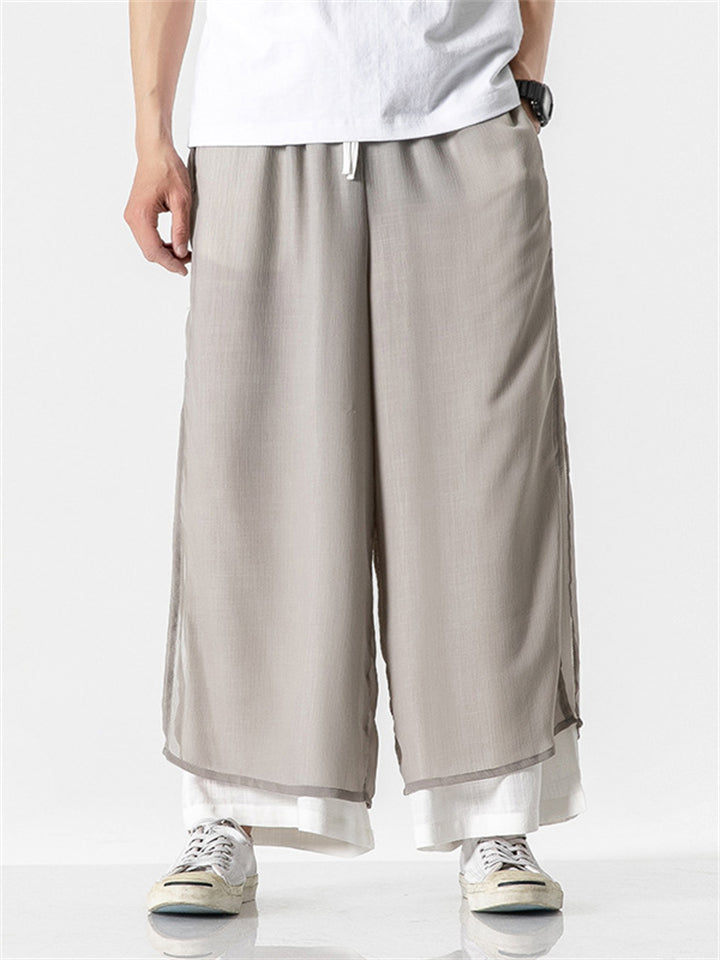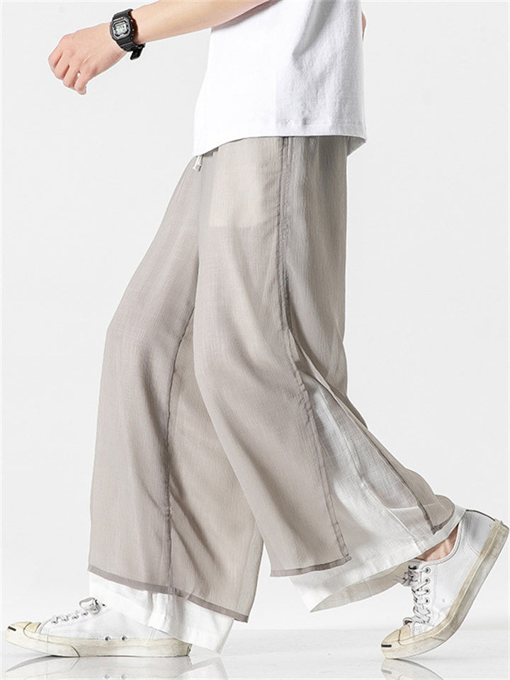 Men's Chinese Style Flowy Double Layer Mesh Cotton Pants