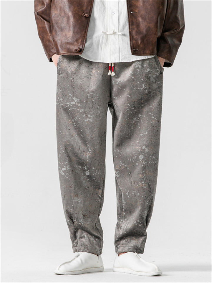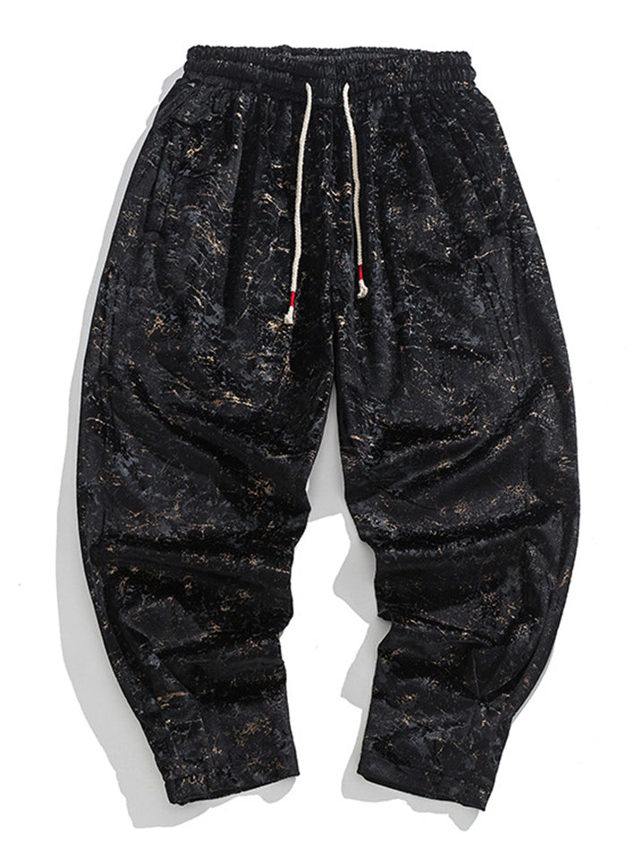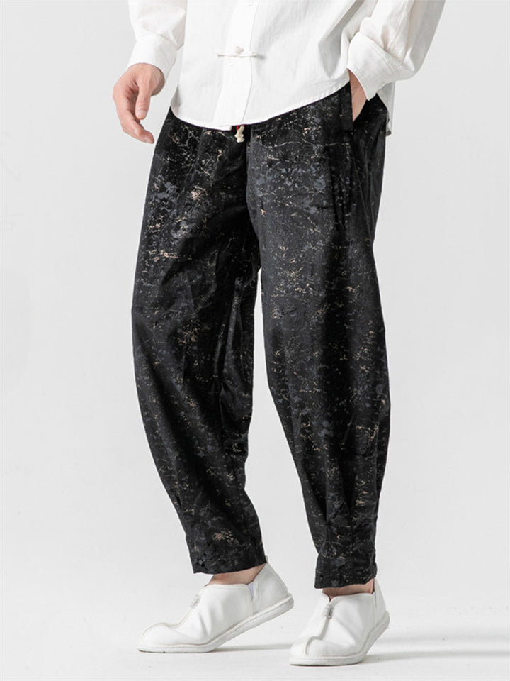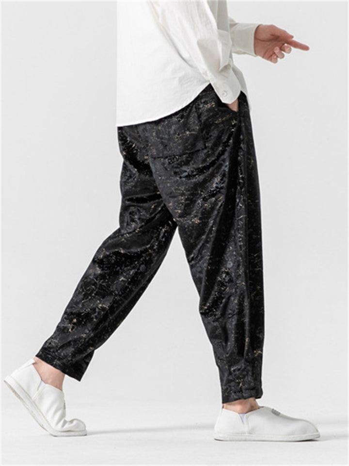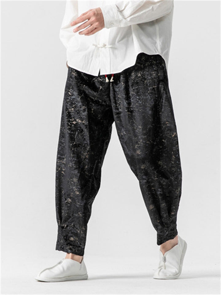 Men's Chinese Style Jacquard Winter Thickened Tapered Pants
