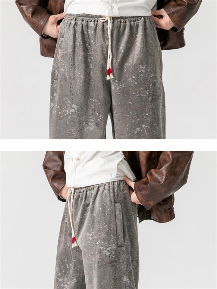 Men's Autumn Vintage Striped Drawstring Wide Leg Pants