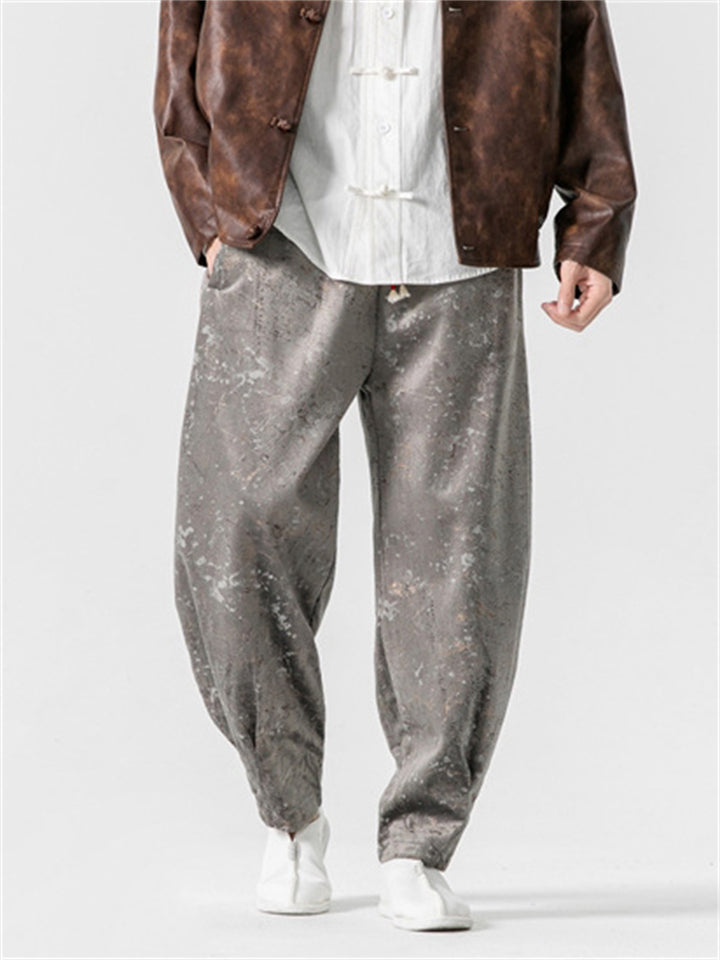 Men's Japanese Style Vintage Solid Color Texture Scimitar Pants