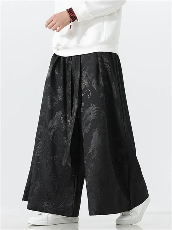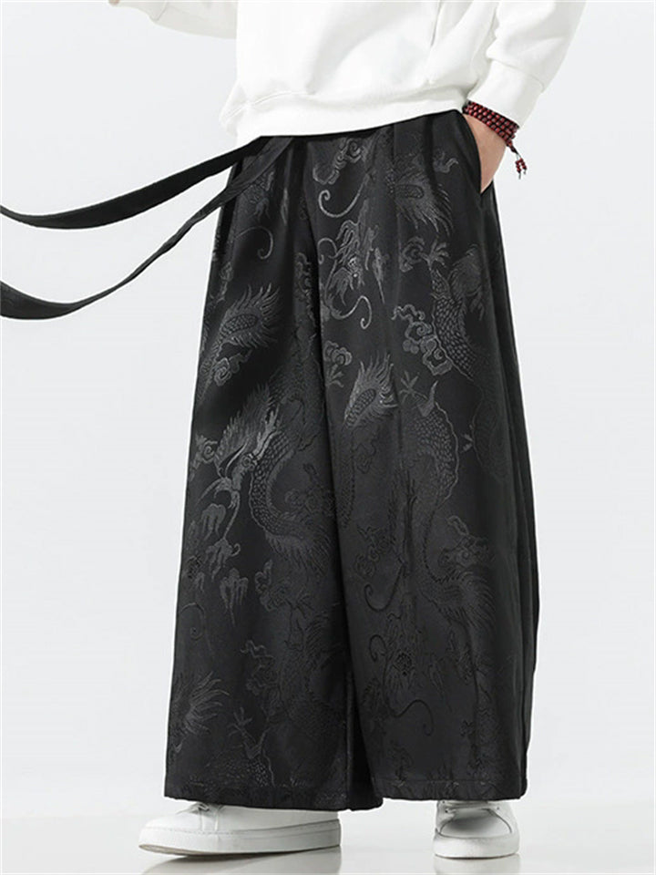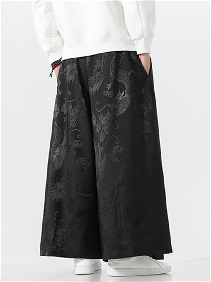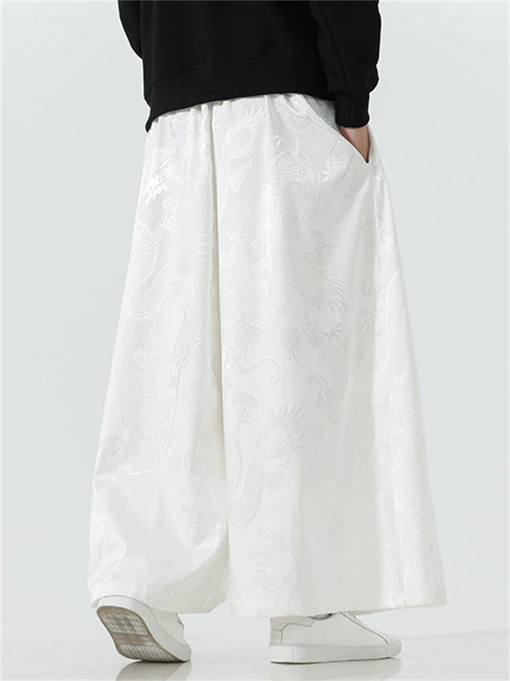 Men's Chinese Style Loong Jacquard Wide Leg Hanfu Mamian Pants