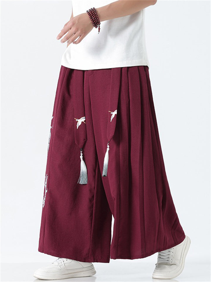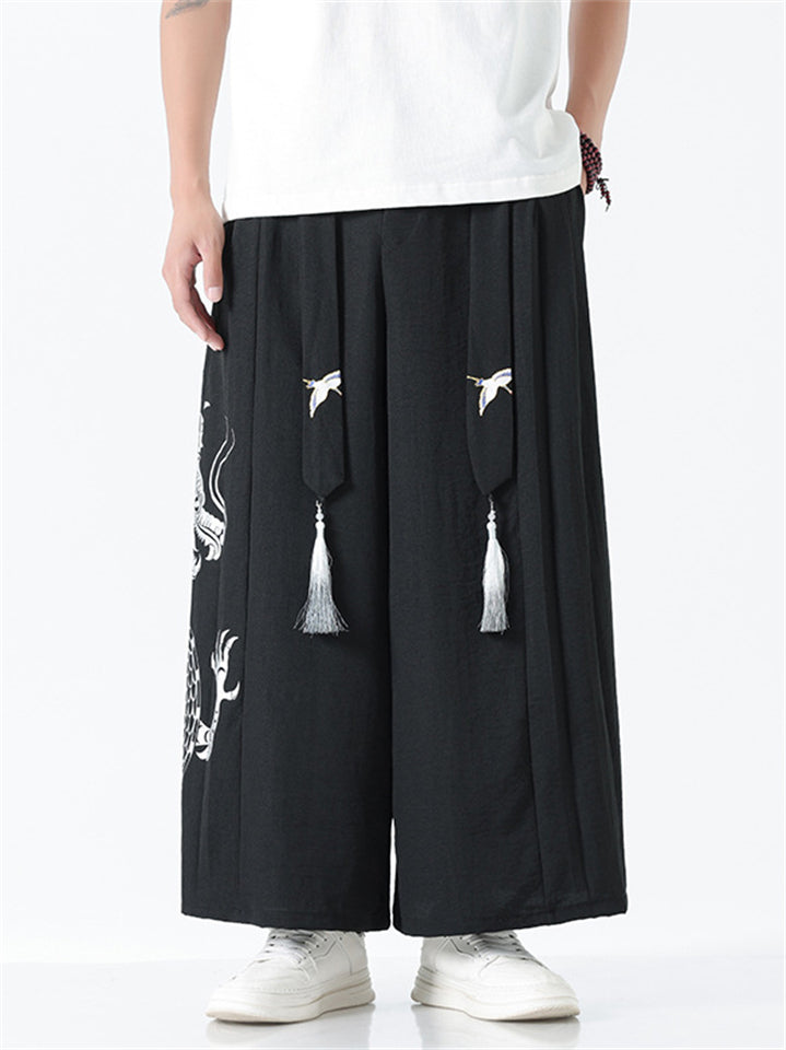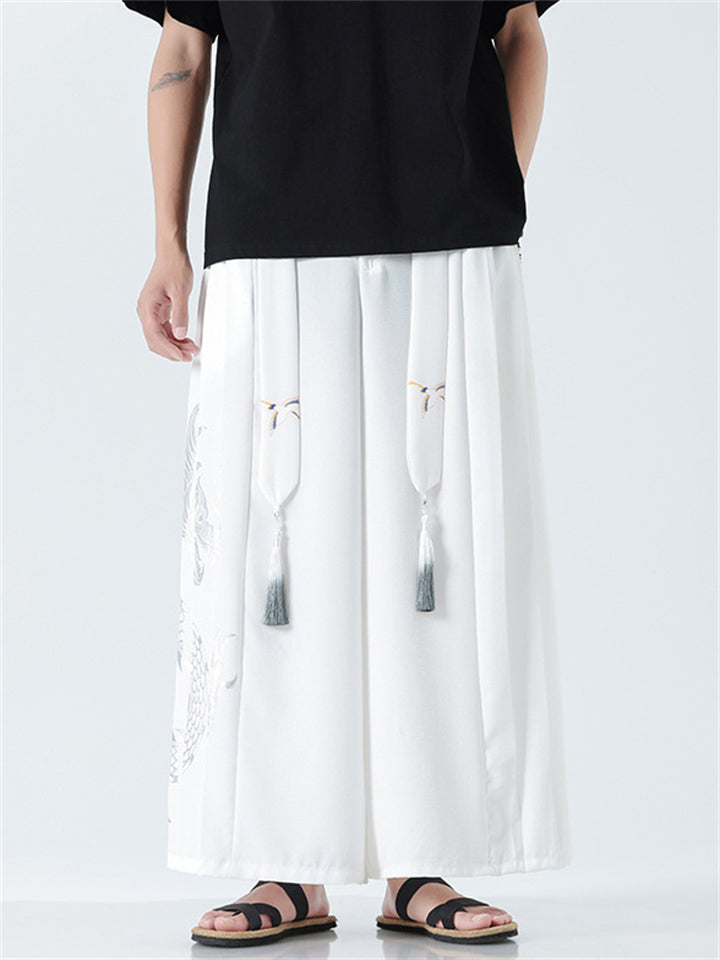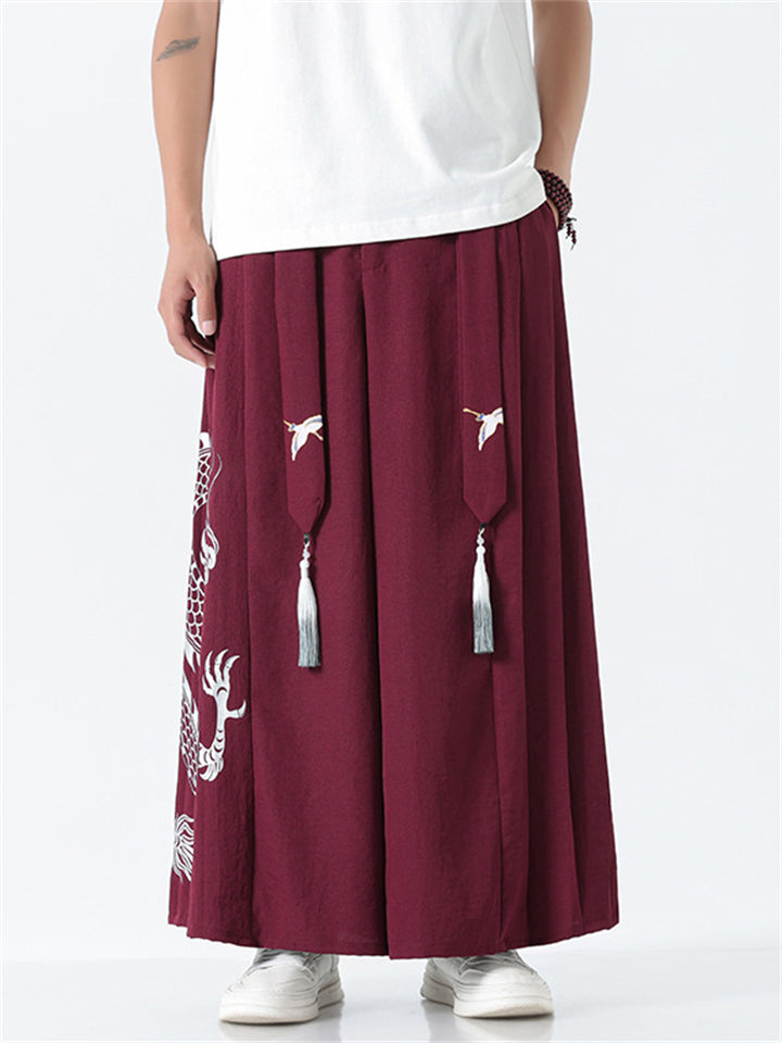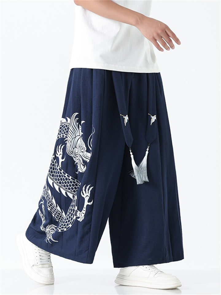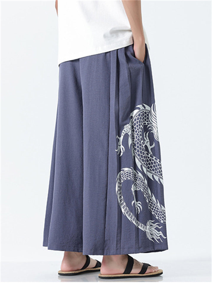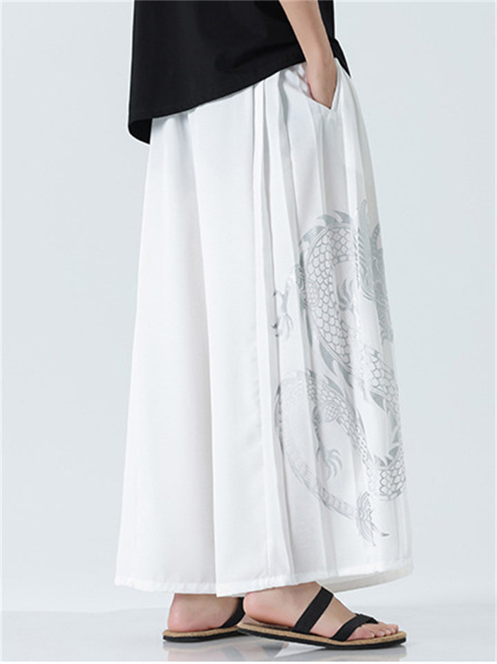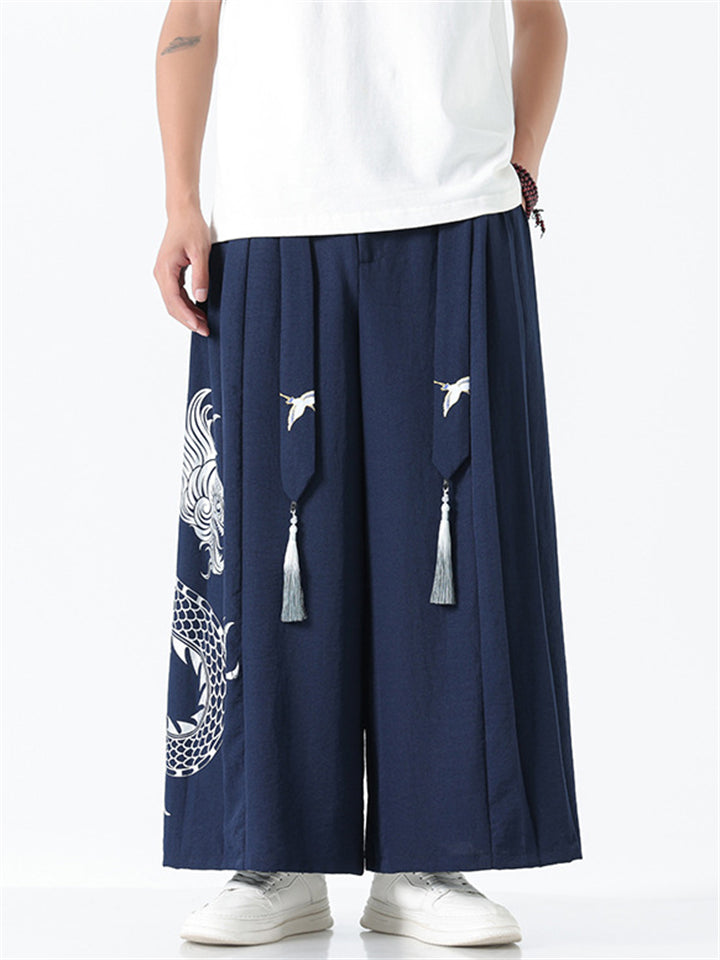 Men's Chinese Style Loong Print Wide Leg Hanfu Pants
