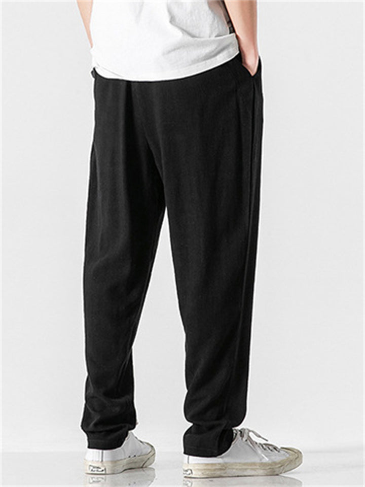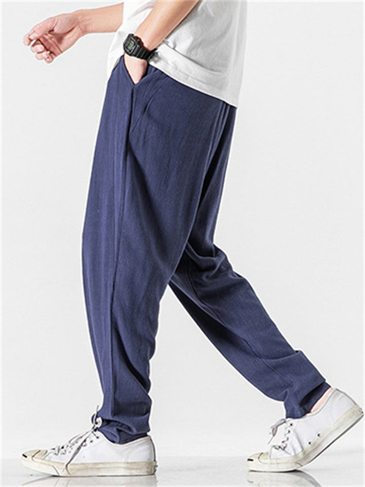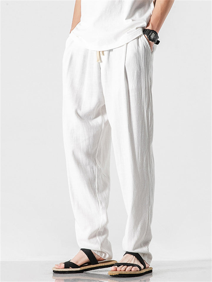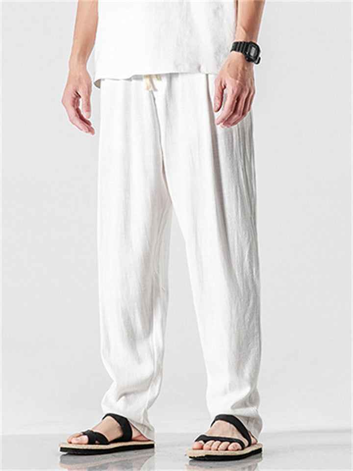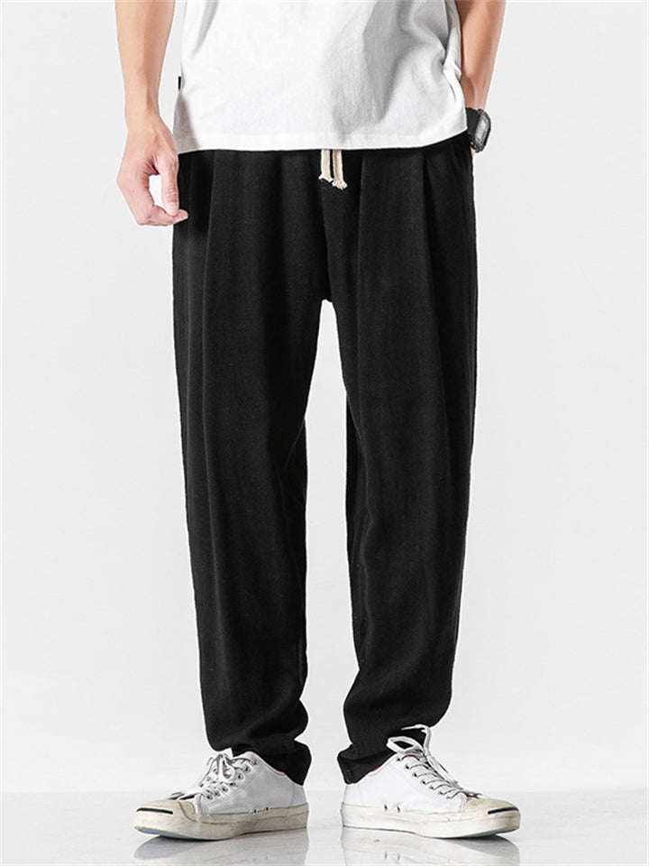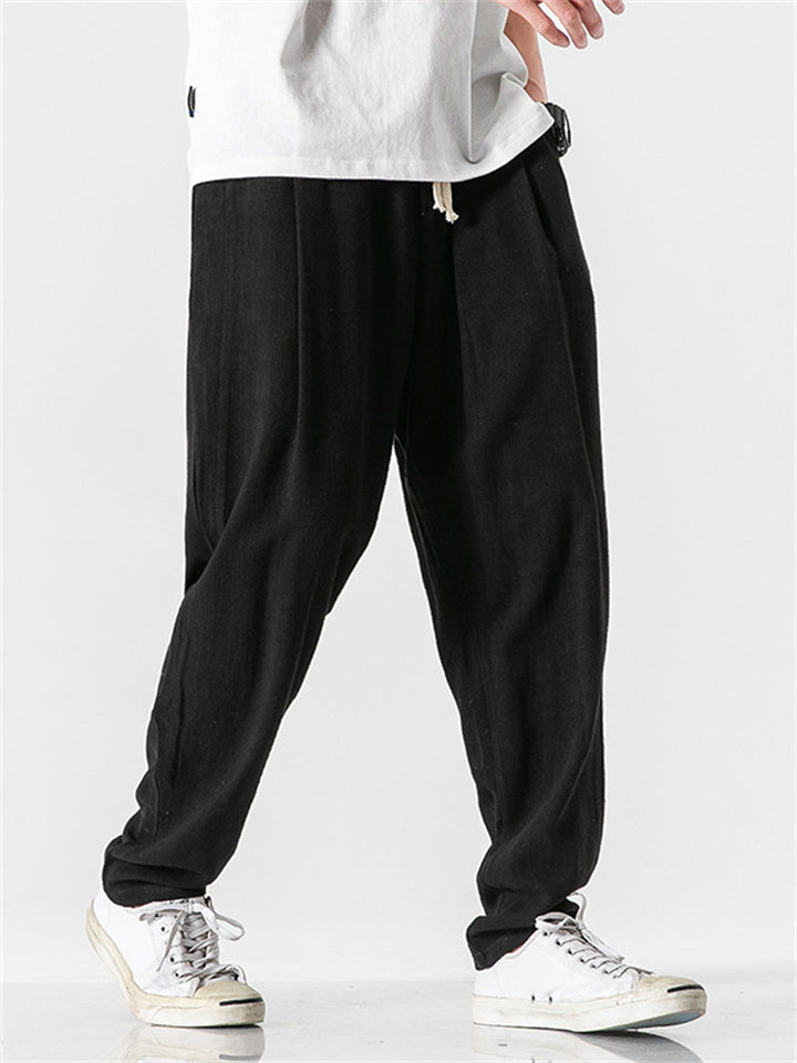 Vintage Japanese Street Style Drawstring Linen Pants for Men