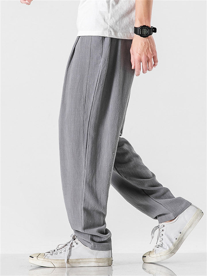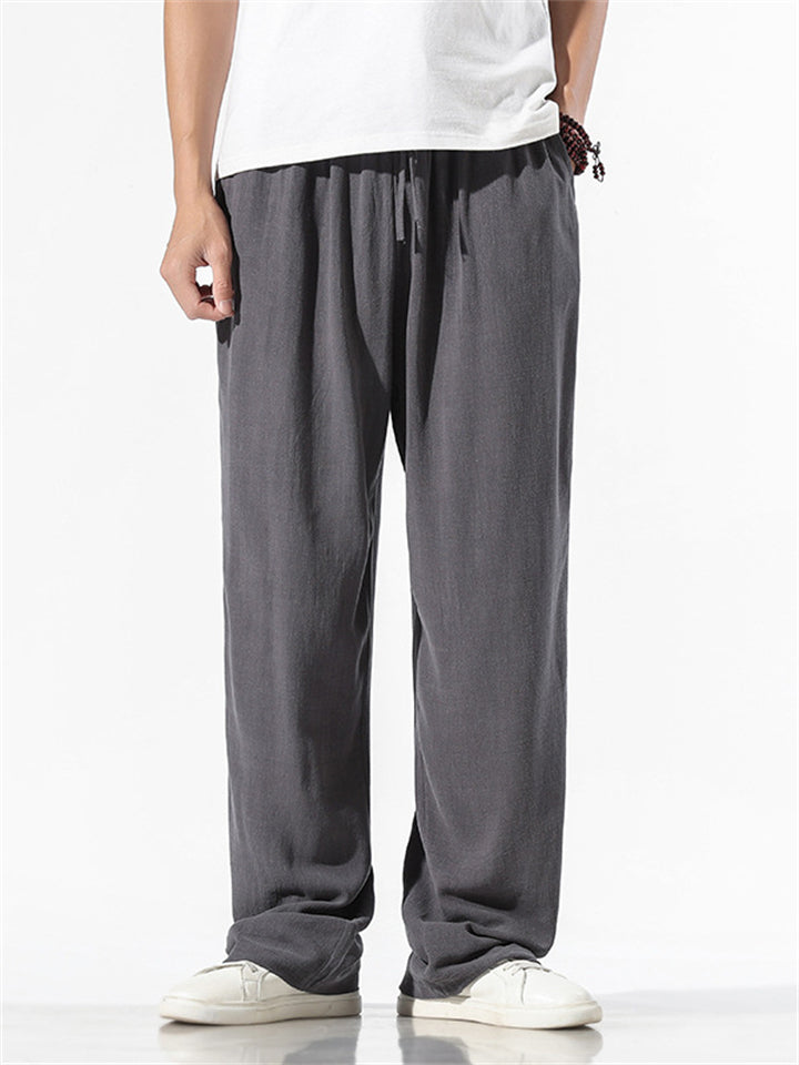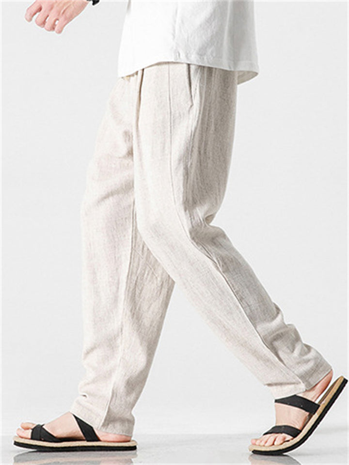 Men's Comfortable Linen Regular Fit Straight-Leg Trousers