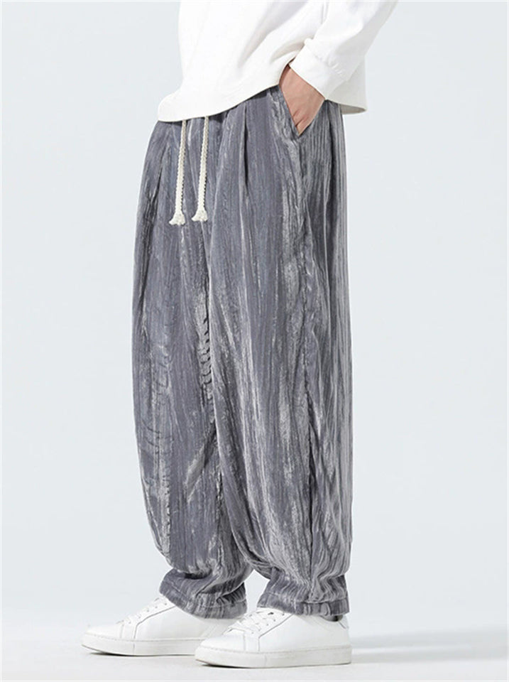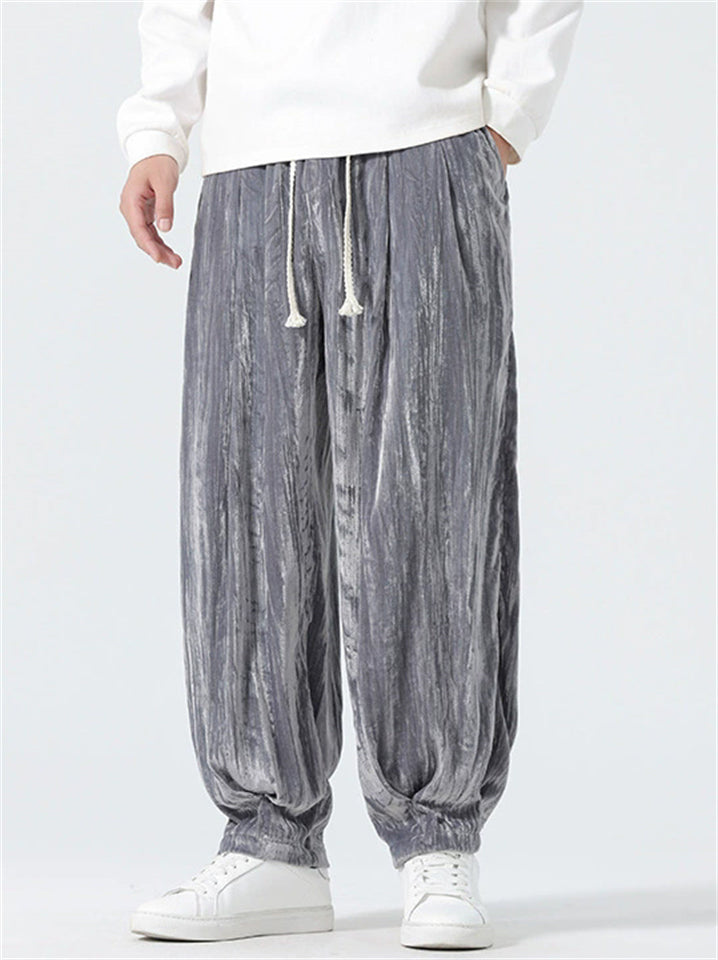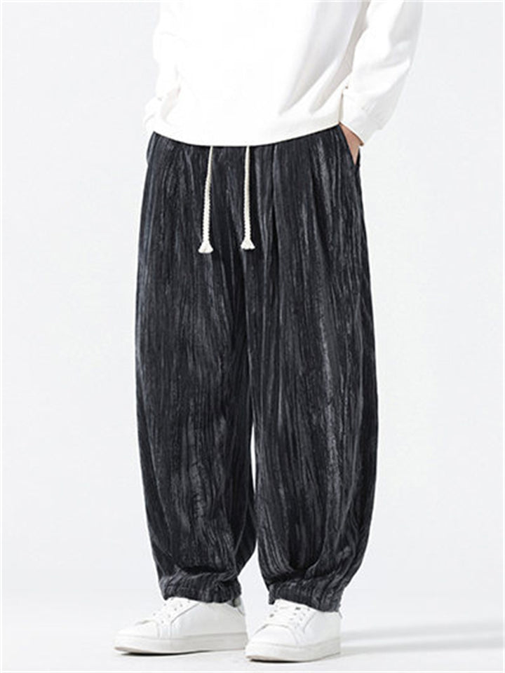 Men's Comfy Autumn Velvet Wrinkled Elastic Waist Drawstring Pants