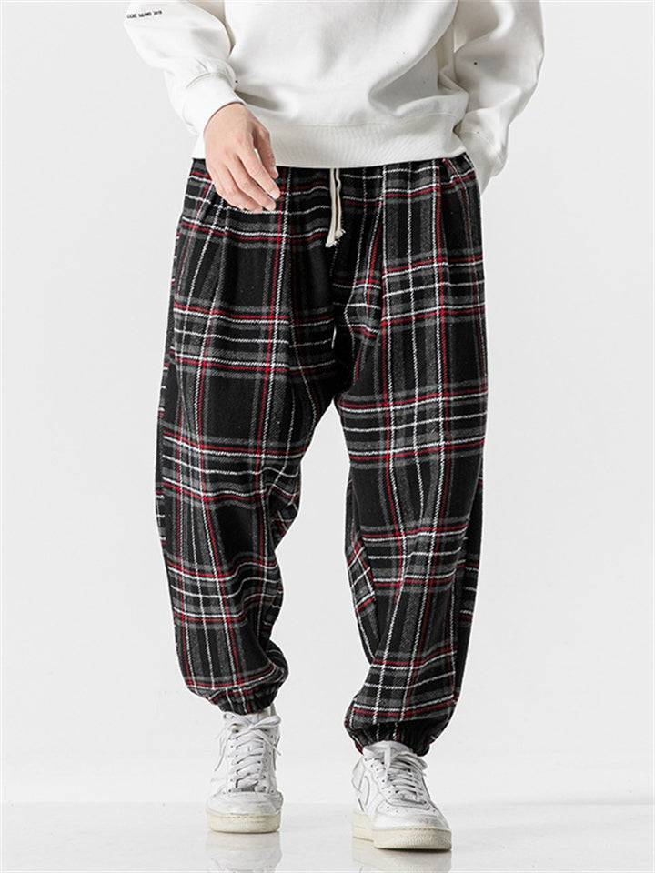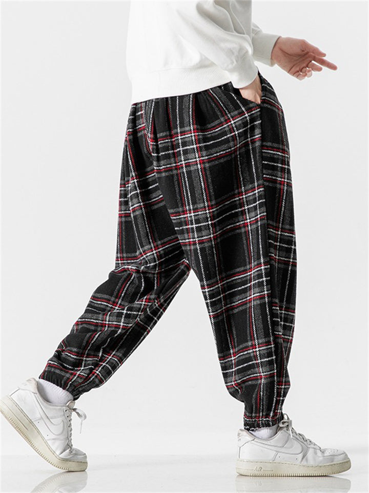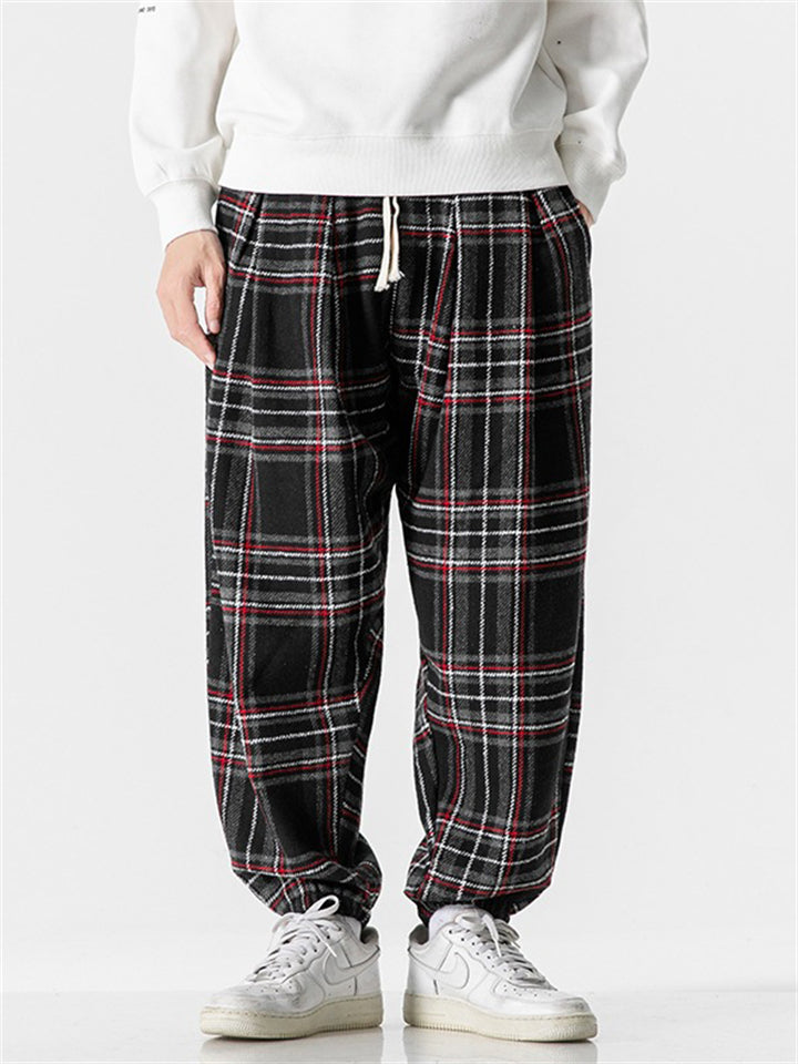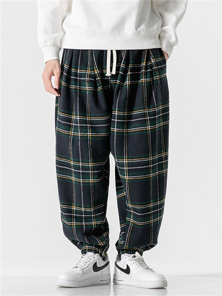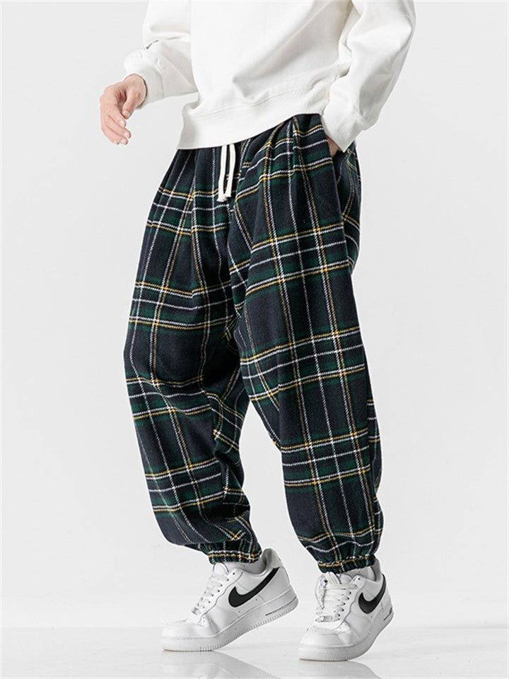 Men's Contrast Color Plaid Stylish Woolen Pants