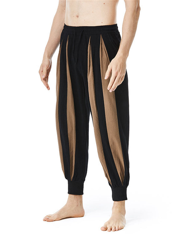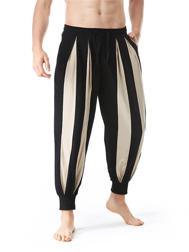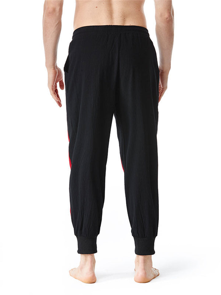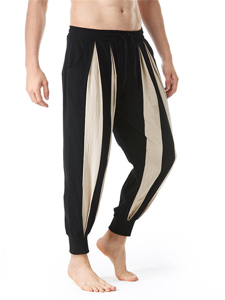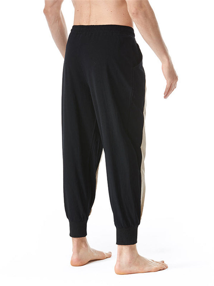 Men's Cotton Linen Contrast Color Ankle-tied Pants
