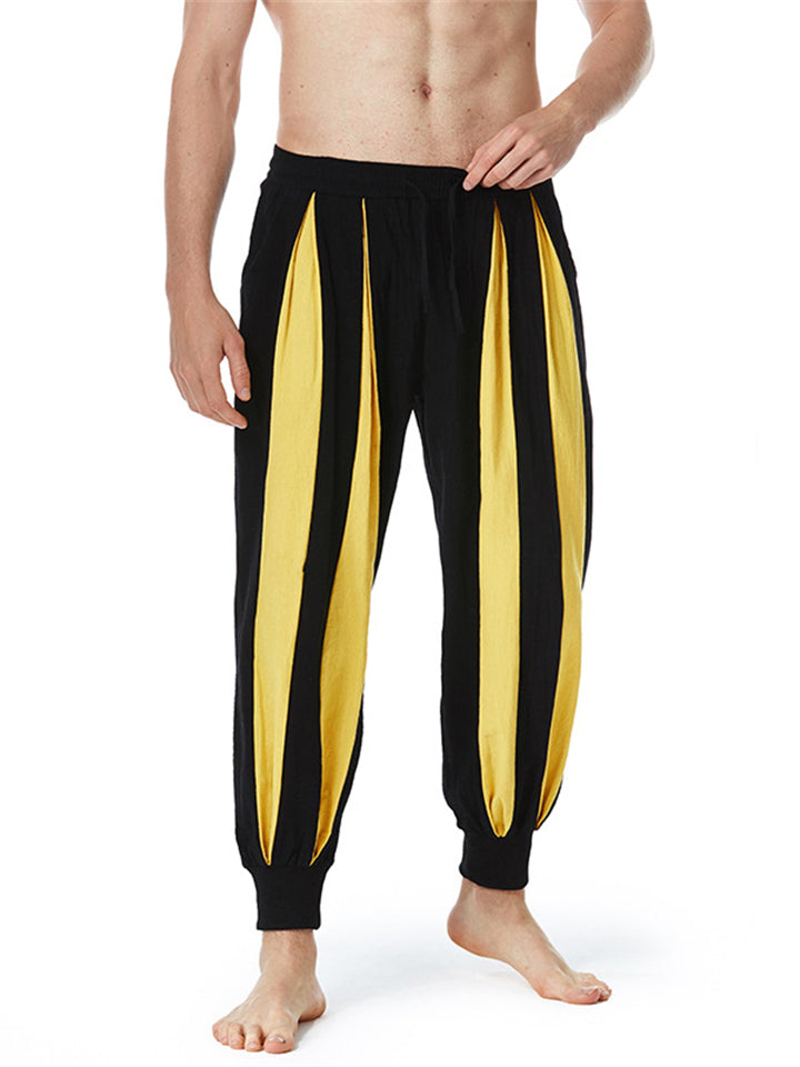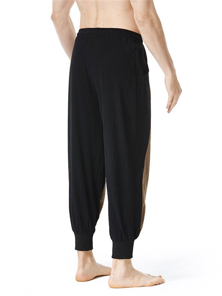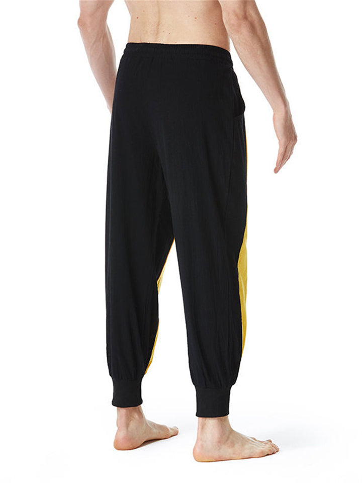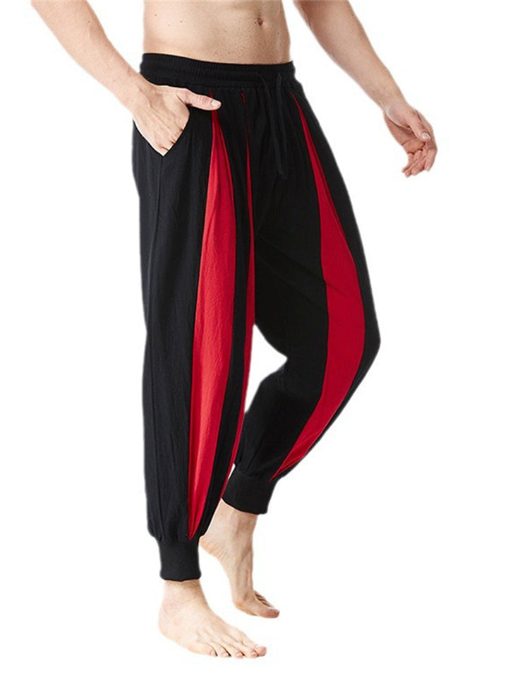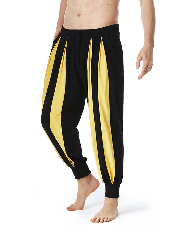 Men's Cotton Linen Contrast Color Ankle-tied Pants