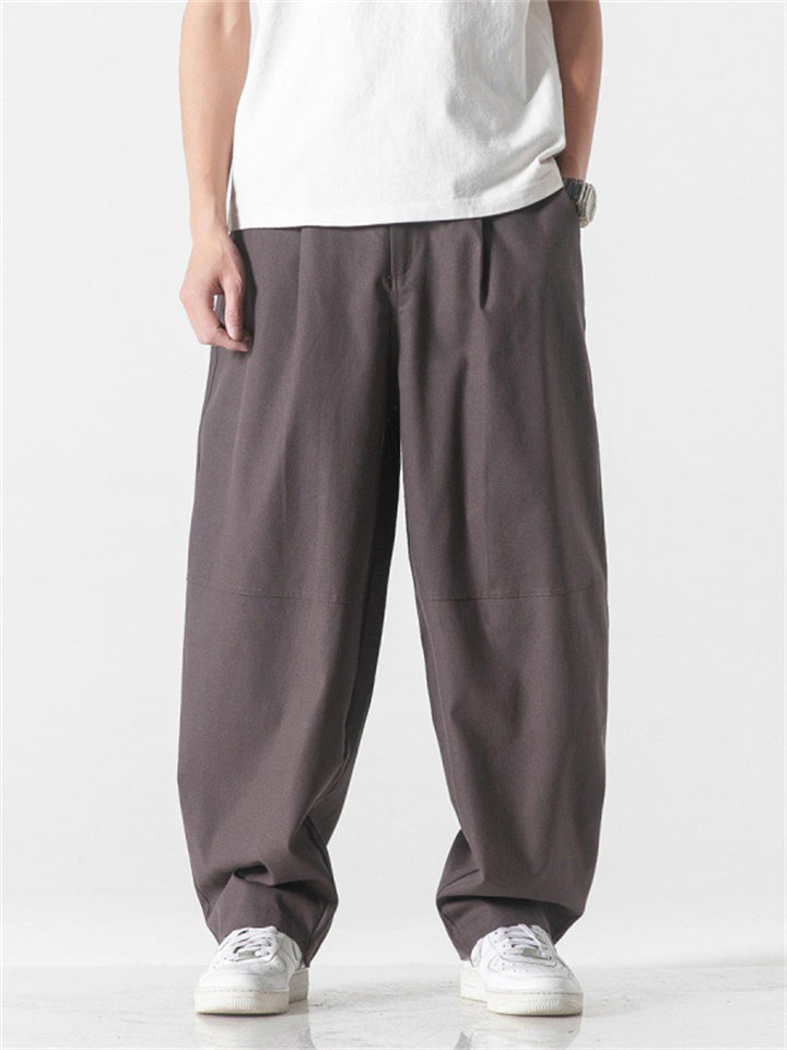 Men's Japanese Style Vintage Solid Color Texture Scimitar Pants